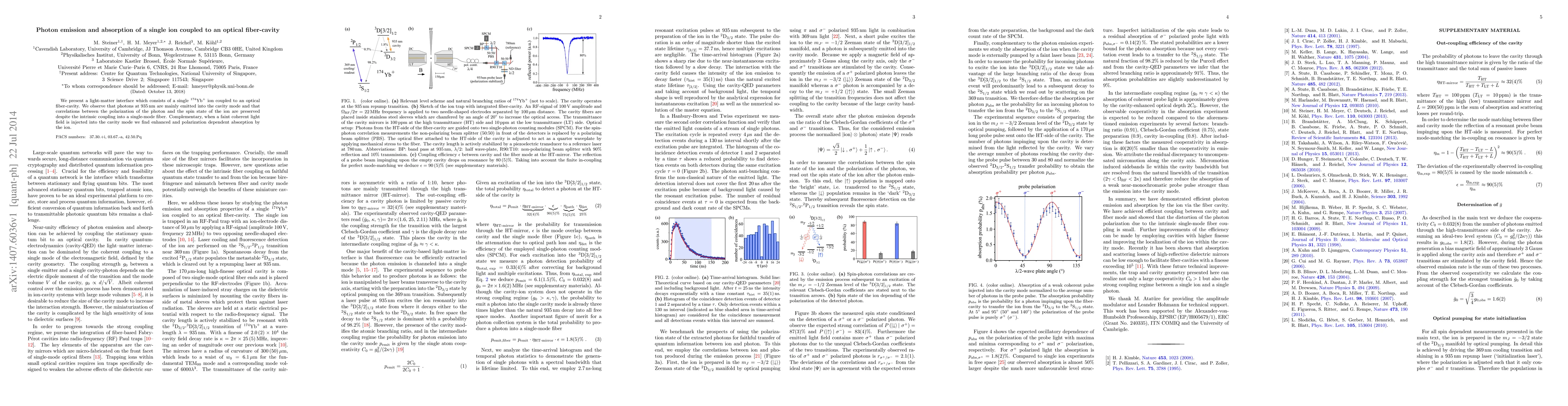 This study explores a single $^{174}$Yb$^+$ ion coupled to an optical fiber-cavity, demonstrating photon emission into the cavity mode at 935 nm with preserved polarization correlations. Additionally, it shows enhanced and polarization-dependent absorption when a coherent light field is introduced into the cavity.