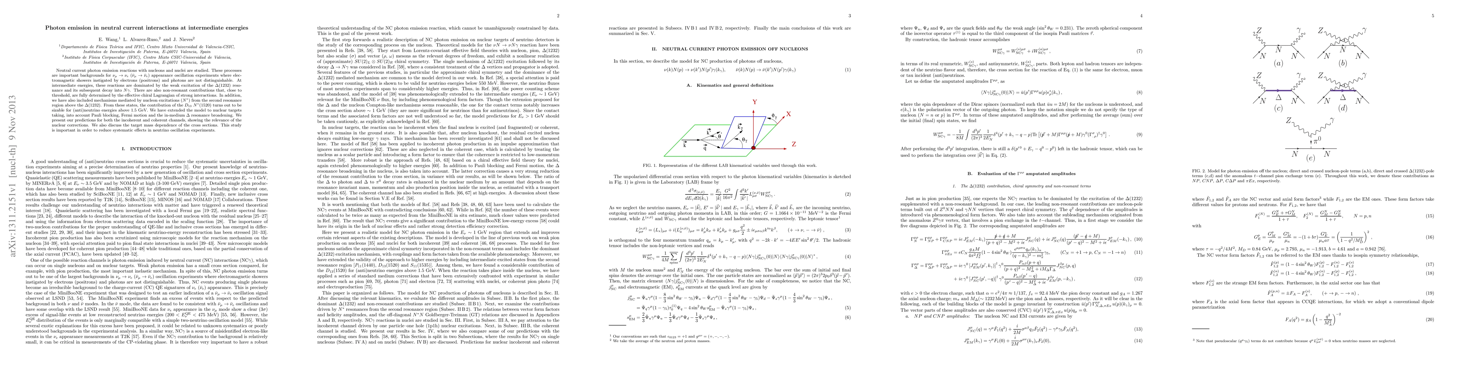 This paper investigates neutral current photon emission in nucleon and nuclear interactions at intermediate energies, focusing on the weak excitation of the Delta(1232) resonance and its decay. It also considers non-resonant contributions and nucleon excitations, and extends the model to nuclear targets, providing predictions for both incoherent and coherent channels to reduce systematic effects in neutrino oscillation experiments.