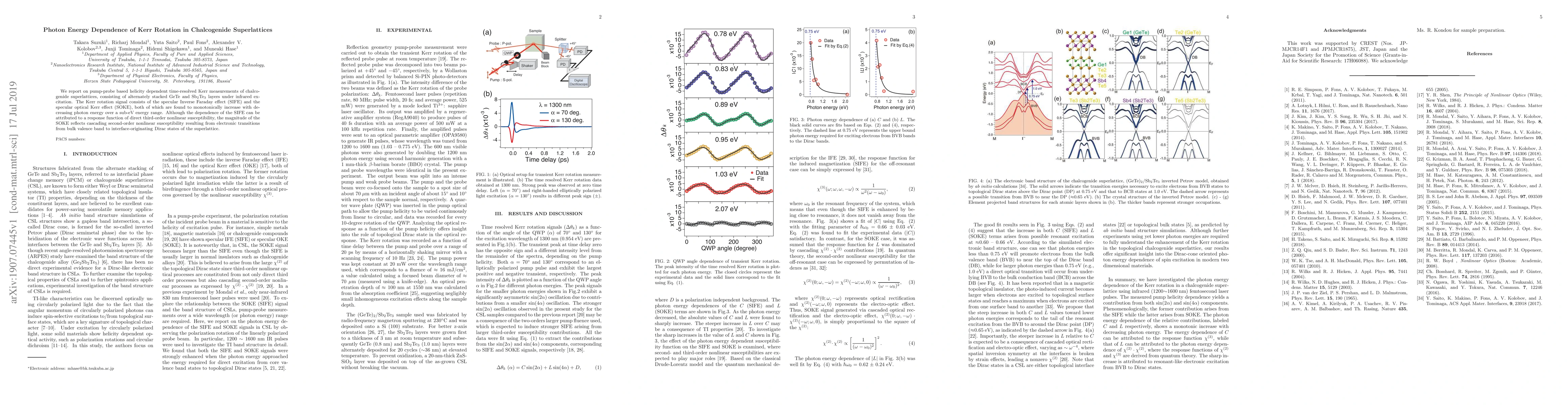 Chalcogenide superlattices exhibit increasing Kerr rotation with decreasing photon energy, reflecting electronic transitions to Dirac states and cascading second-order nonlinear susceptibility.
