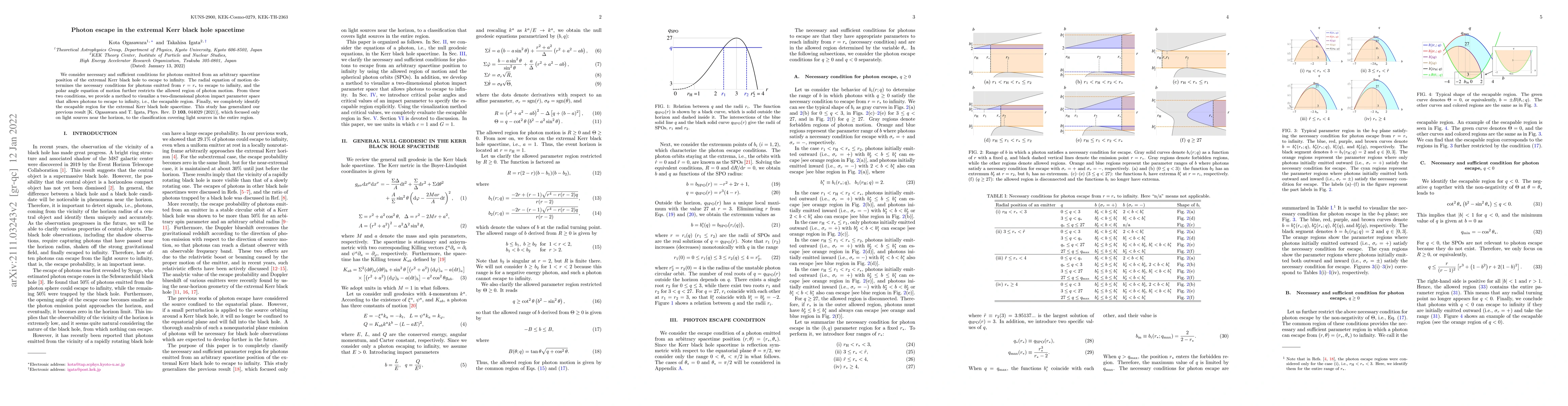 The paper introduces critical polar angles and critical values of q to classify photonescape, providing a comprehensive method for visualizing the escapable region in the extremal Kerr black hole spacetime.