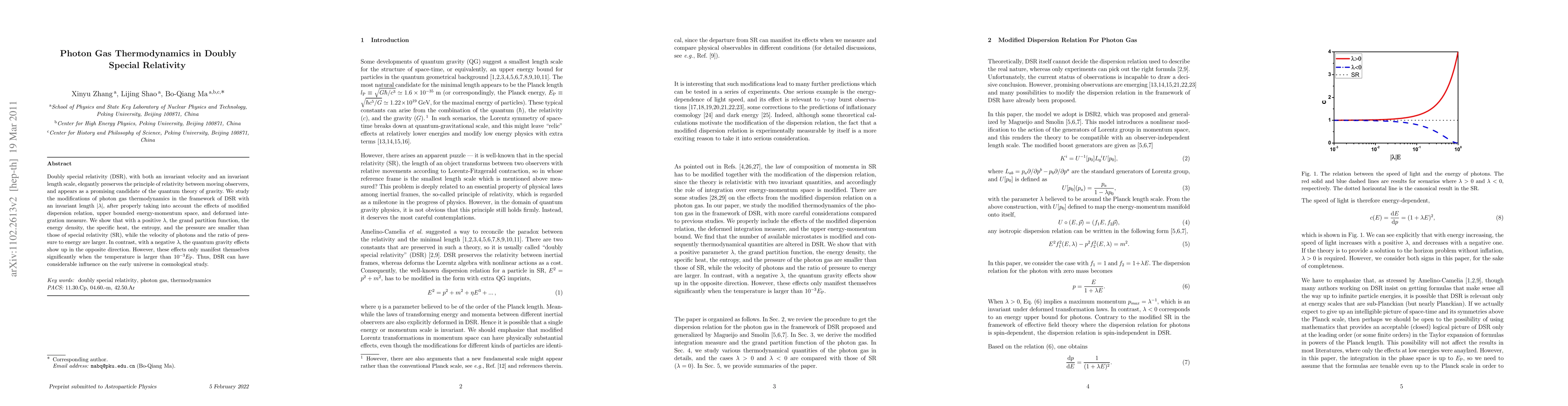 This paper investigates the thermodynamic properties of photon gas within the framework of doubly special relativity (DSR), revealing modifications due to an invariant length scale. It finds that DSR effects, dependent on the sign of the invariant length, alter thermodynamic quantities like energy density and pressure, with significant implications for early universe cosmology when temperatures exceed $10^{-3} E_{\rm P}$.
