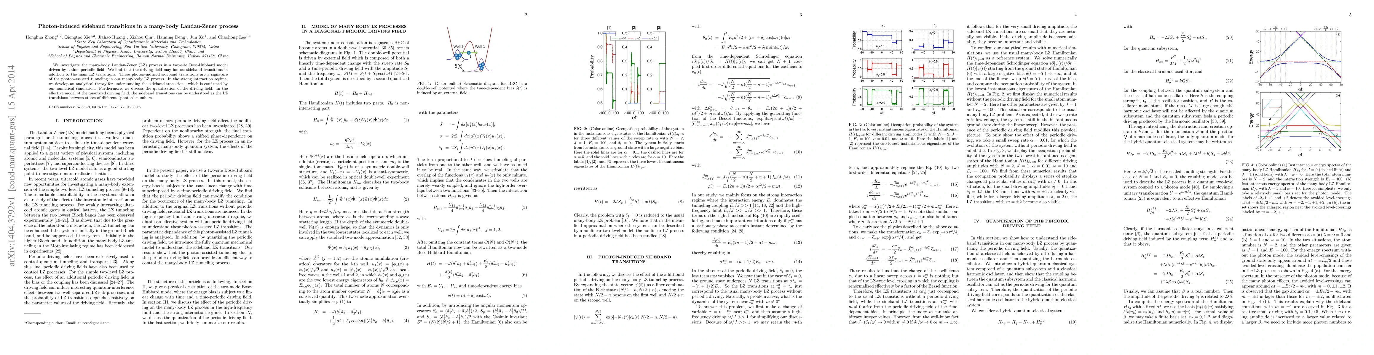 This paper explores photon-induced sideband transitions in a many-body Landau-Zener process within a two-site Bose-Hubbard model, revealing photon-assisted tunneling effects. The study develops an analytical theory for these transitions in the strong interaction regime, validated by numerical simulations, and discusses the implications of a quantized driving field.