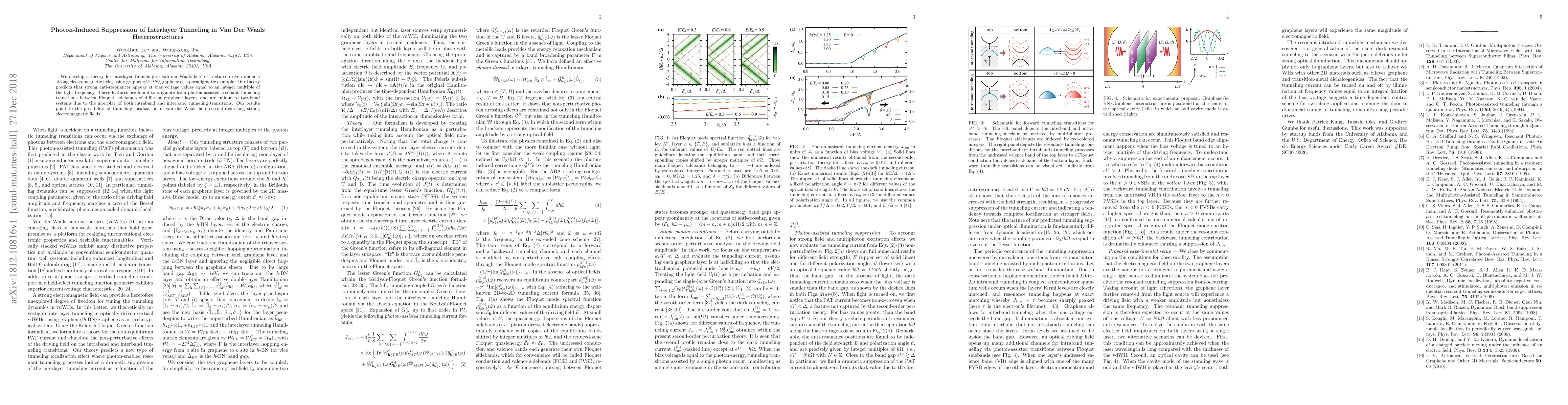 This paper proposes a theoretical framework explaining how strong electromagnetic fields can induce anti-resonances in interlayer tunneling within van der Waals heterostructures, particularly in graphene/h-BN/graphene systems, due to photon-assisted tunneling. The findings suggest potential for controlling tunneling behavior using light, with implications for developing localized tunneling states.