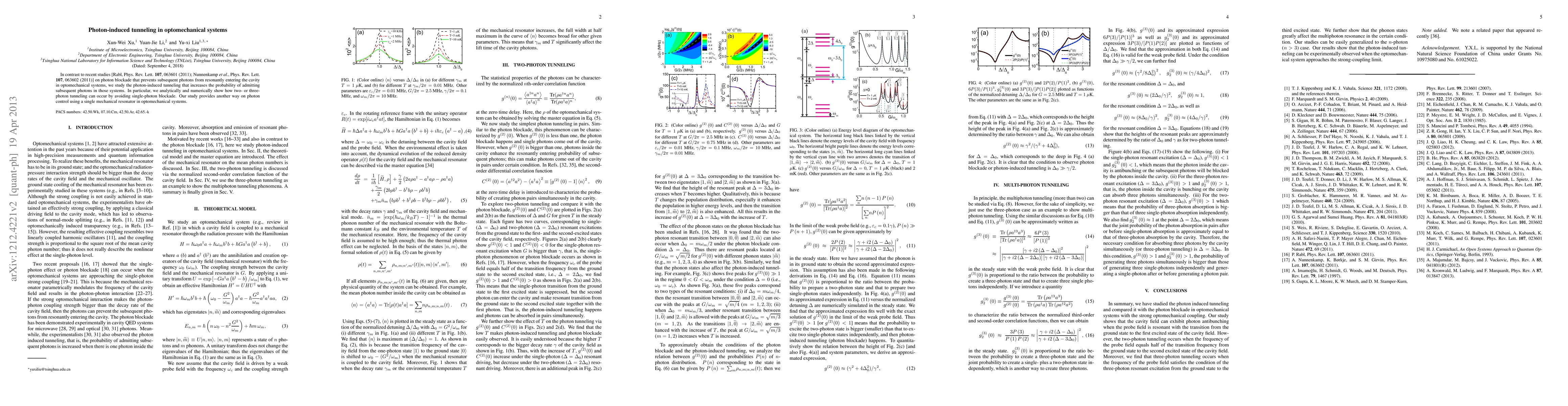 This paper investigates photon-induced tunneling in optomechanical systems, demonstrating how two or three-photon tunneling can occur, thereby increasing the probability of admitting subsequent photons. This contrasts with photon blockade and offers an alternative method for photon control using a single mechanical resonator.