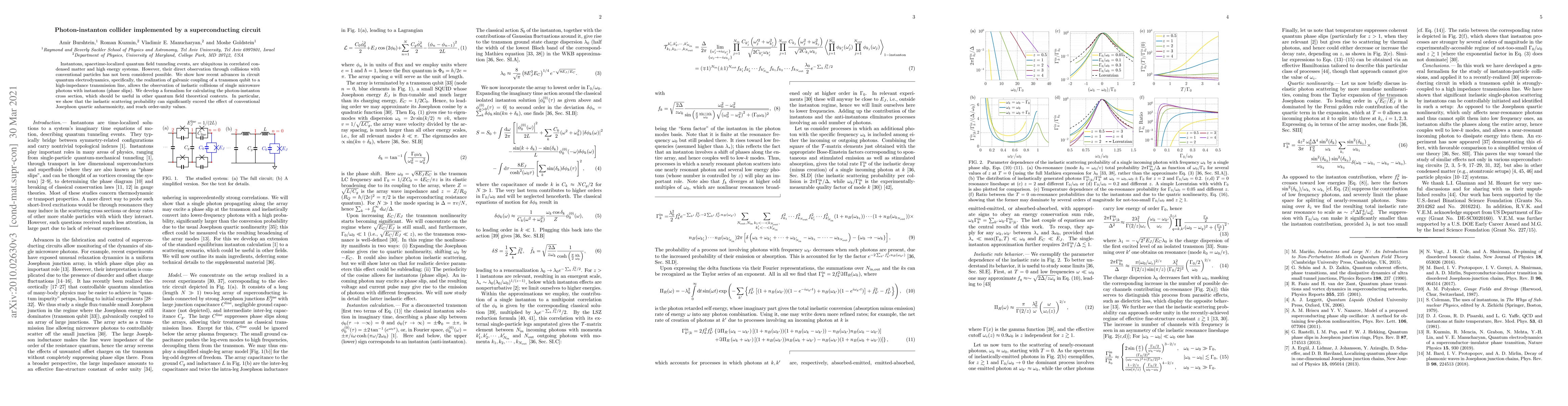 The paper presents a method using superconducting circuits to observe collisions between single microwave photons and instantons, spacetime-localized quantum field tunneling events. This is achieved through galvanic coupling of a transmon qubit to a high-impedance transmission line. The research develops a formalism for calculating photon-instanton cross sections, demonstrating that inelastic scattering probabilities can exceed conventional Josephson quartic anharmonicity and reach near-certainty levels.
