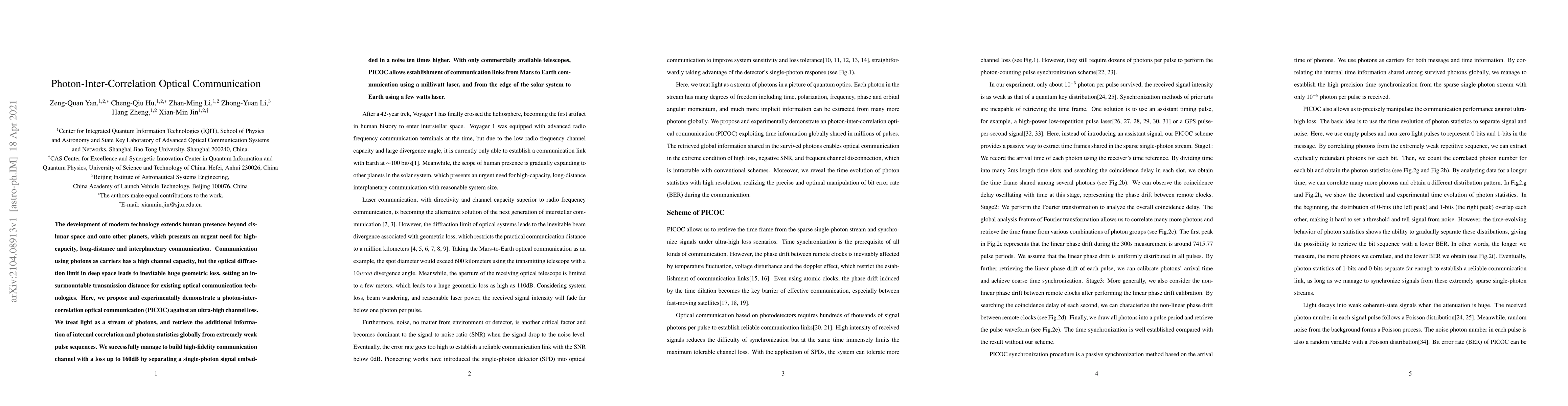 Researchers developed photon-inter-correlation optical communication (PICOC) to overcome huge geometric losses in deep space, enabling high-fidelity communication links up to 160dB loss with commercially available telescopes.