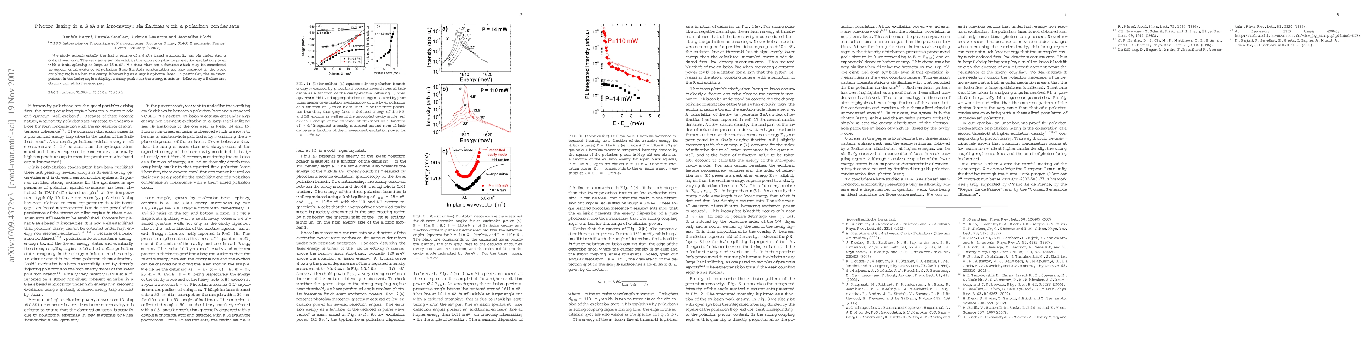 This paper investigates the lasing regime in a GaAs microcavity, showing strong coupling and Rabi splitting, and finds similarities in emission patterns between photon lasing and polariton condensation, suggesting potential evidence of polariton Bose-Einstein condensation even in weak coupling.