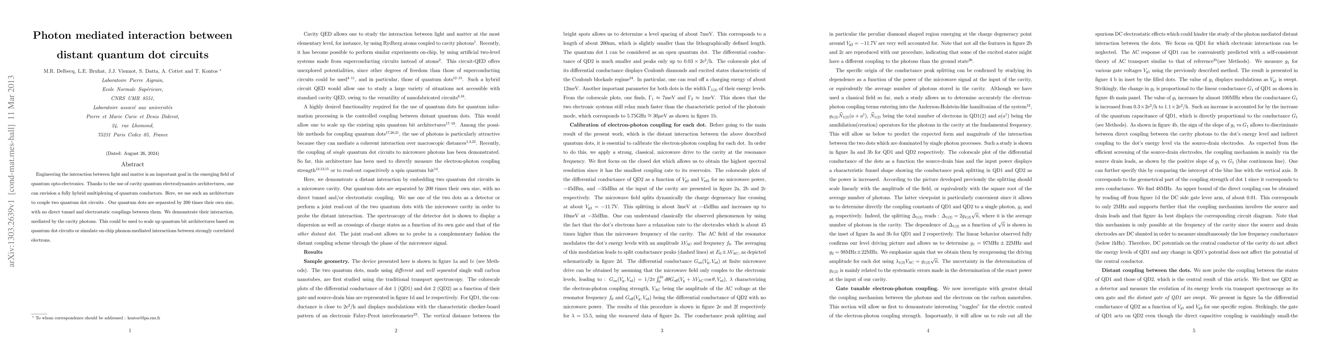 This paper demonstrates the photon-mediated interaction between two quantum dot circuits separated by a large distance, showing that cavity photons can couple them without direct physical connections. This achievement could enable scalable quantum bit architectures and simulate phonon-mediated interactions in correlated electron systems.