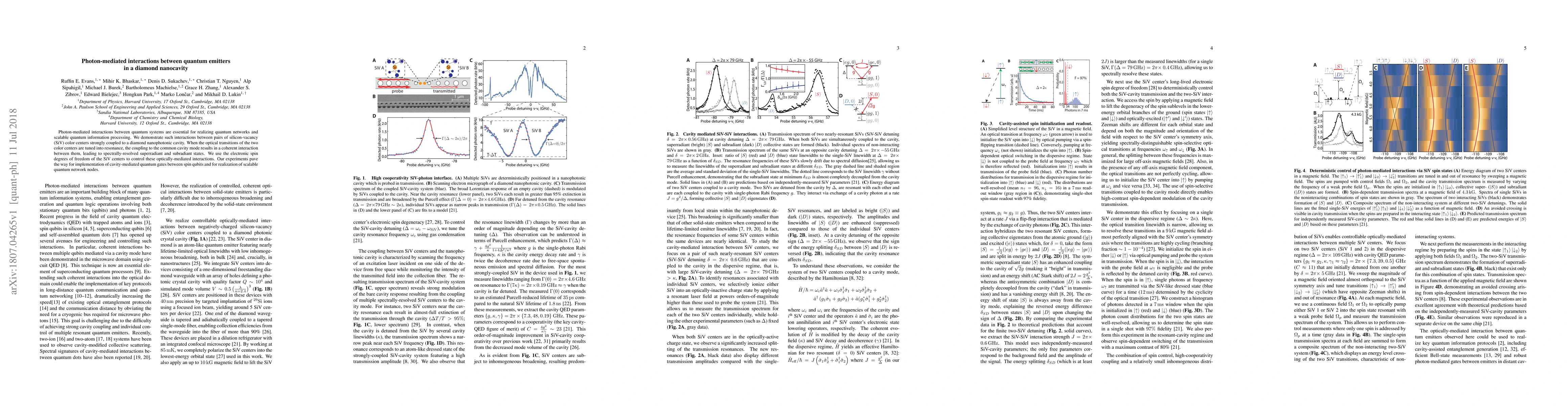 This paper demonstrates photon-mediated interactions between silicon-vacancy color centers in a diamond nanocavity, showing coherent coupling and control via spin degrees of freedom, which is crucial for scalable quantum information processing and quantum networks. The findings enable potential implementation of cavity-mediated quantum gates and scalable quantum network nodes.