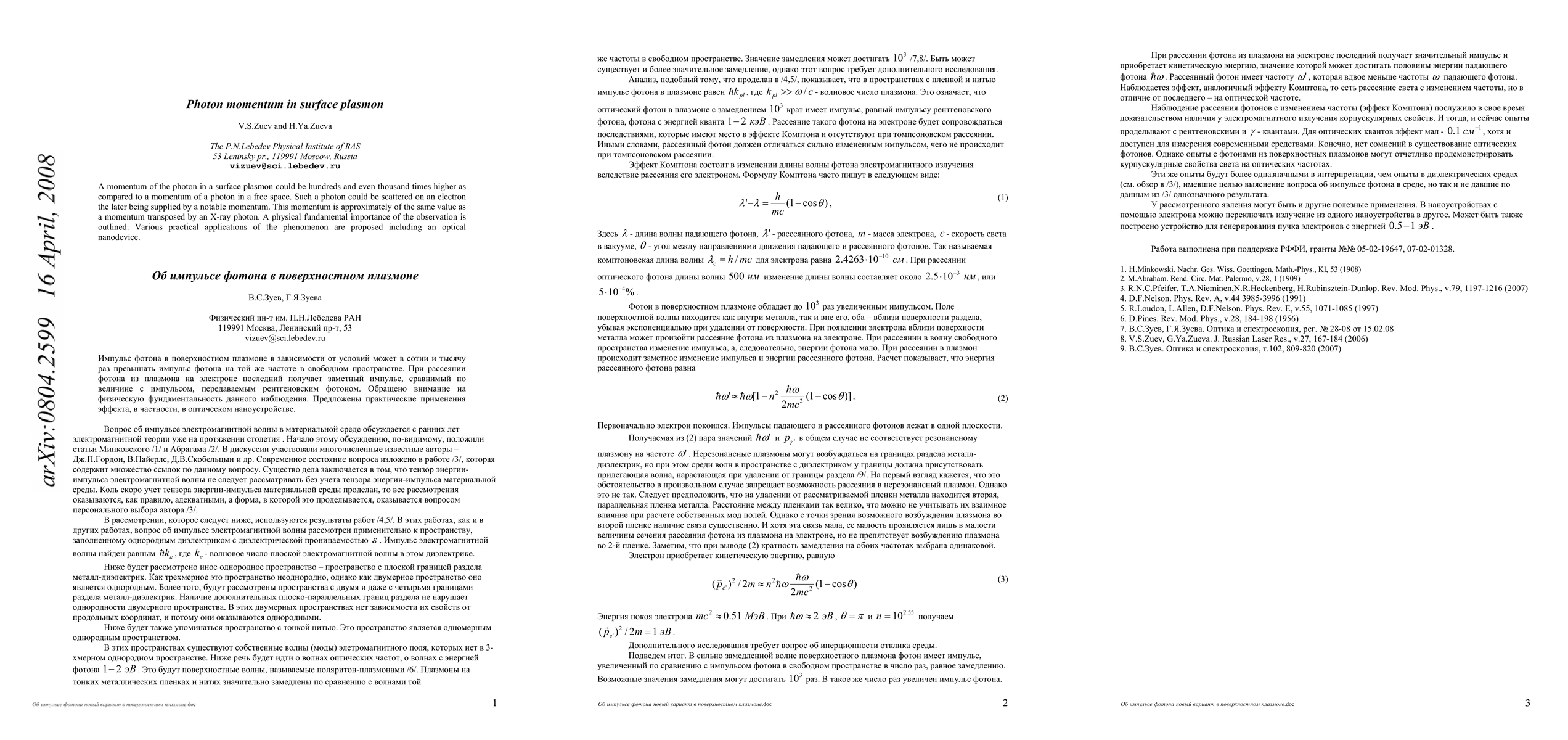 A momentum of the photon in a surface plasmon could be hundreds and even thousand times higher as compared to a momentum of a photon in a free space. Such a photon could be scattered on an electron the later being supplied by a notable momentum. This momentum is approximately of the same value as a momentum transposed by an X-ray photon. A physical fundamental importance of the observation is outlined. Various practical applications of the phenomenon are proposed including an optical nanodevice.