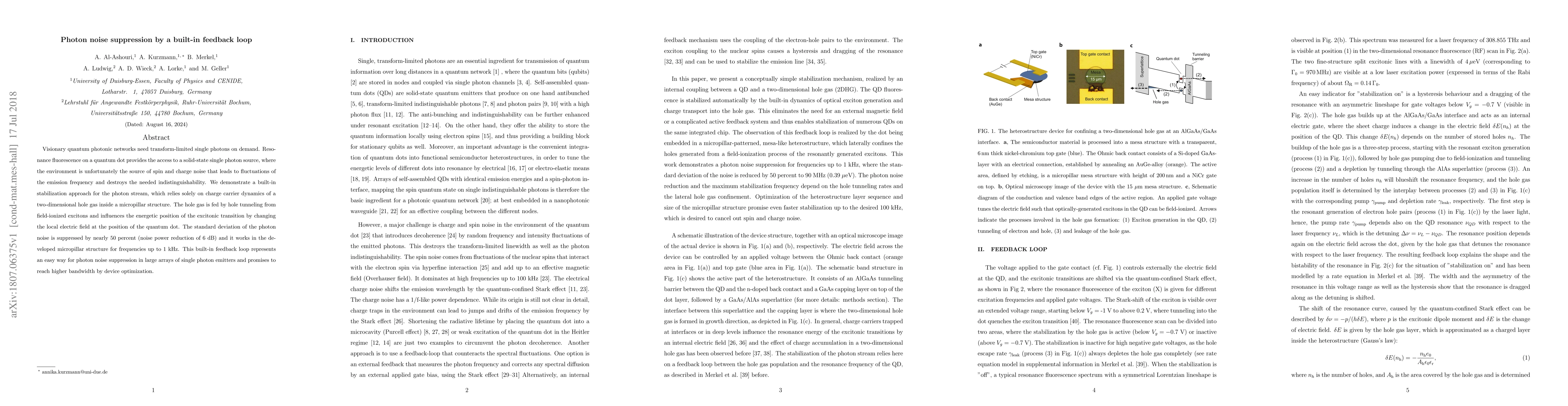 This paper demonstrates a built-in feedback loop using charge carrier dynamics within a micropillar structure to suppress photon noise from a quantum dot-based single photon source, achieving nearly a 50% reduction in noise and promising scalability for large photonic networks.