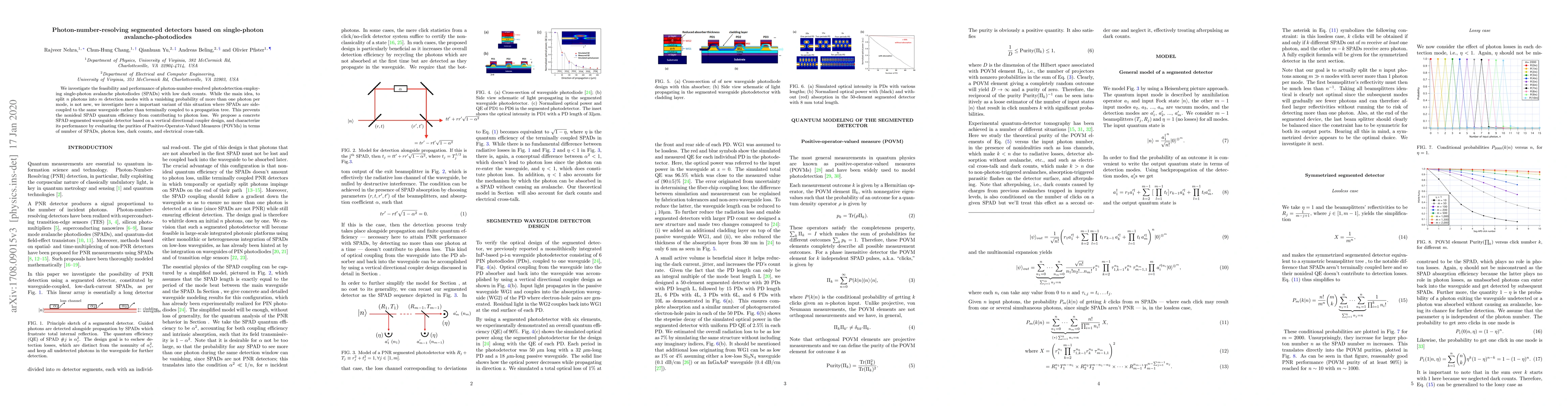 This paper explores the implementation of photon-number-resolving segmented detectors using single-photon avalanche photodiodes (SPADs) coupled to a waveguide, aiming to enhance detection purity and reduce photon loss by side-coupling SPADs. The proposed design, based on vertical directional couplers, is evaluated for its performance in terms of measurement purities, photon loss, and dark counts.