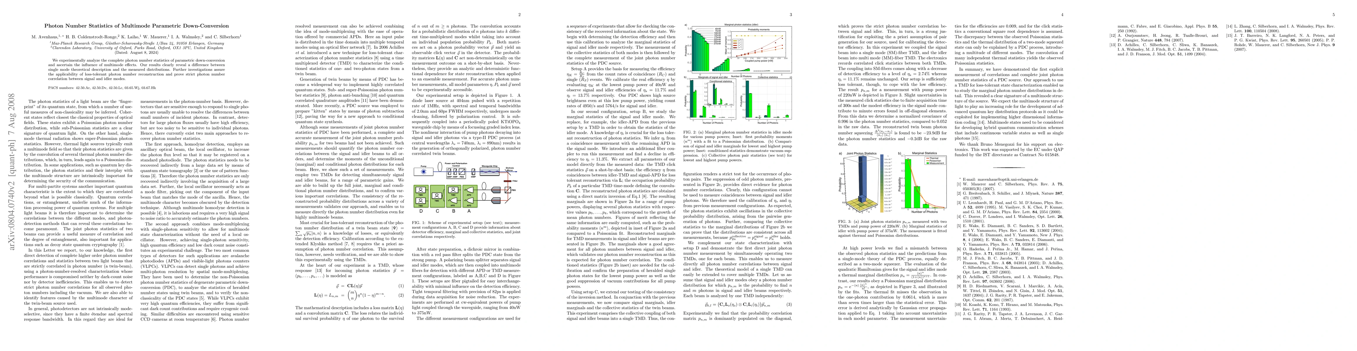 This study experimentally investigates the photon number statistics in multimode parametric down-conversion, revealing discrepancies between single-mode theory and measured distributions. The research confirms the effectiveness of loss-tolerant photon number reconstruction and demonstrates strong photon number correlations between signal and idler modes.