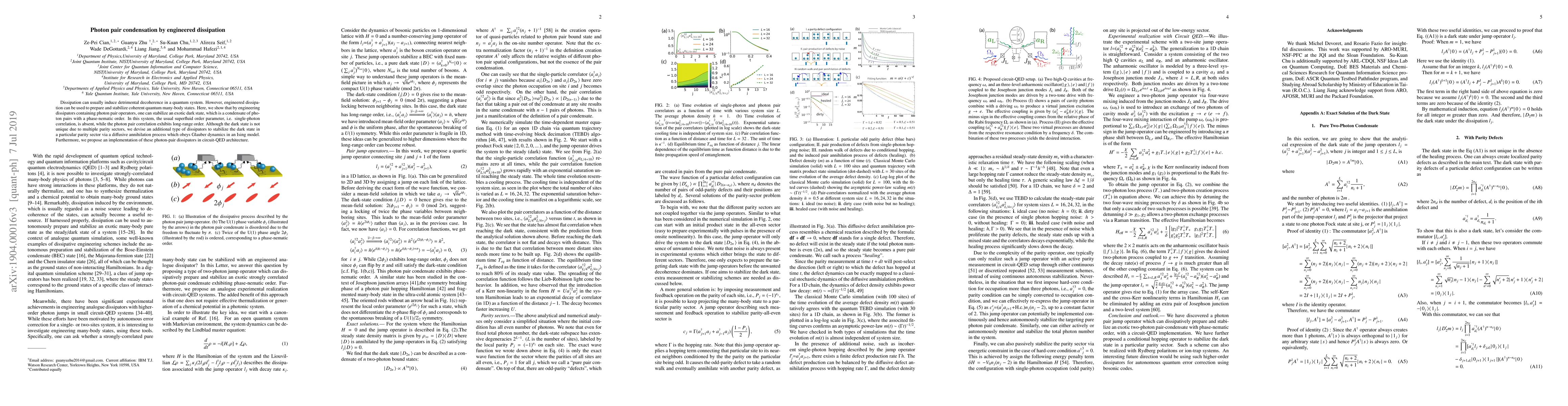 Dissipation can usually induce detrimental decoherence in a quantum system. However, engineered dissipation can be used to prepare and stabilize coherent quantum many-body states. Here, we show that by engineering dissipators containing photon pair operators, one can stabilize an exotic dark state, which is a condensate of photon pairs with a phase-nematic order. In this system, the usual superfluid order parameter, i.e. single-photon correlation, is absent, while the photon pair correlation exhibits long-range order. Although the dark state is not unique due to multiple parity sectors, we devise an additional type of dissipators to stabilize the dark state in a particular parity sector via a diffusive annihilation process which obeys Glauber dynamics in an Ising model. Furthermore, we propose an implementation of these photon-pair dissipators in circuit-QED architecture.