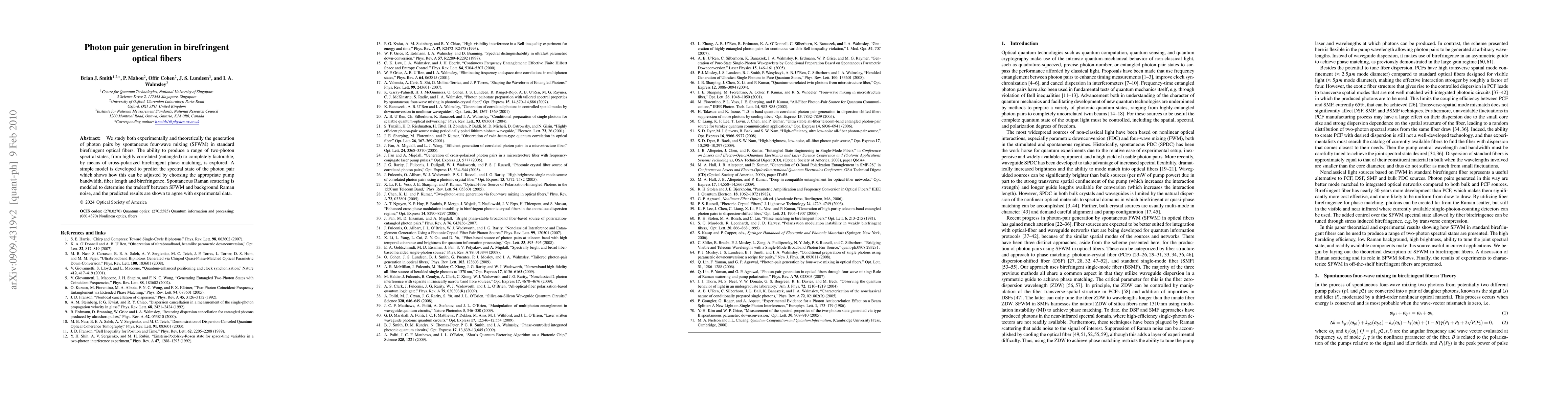 This paper investigates photon pair generation via spontaneous four-wave mixing in birefringent optical fibers, exploring the production of various two-photon spectral states through cross-polarized birefringent phase matching. The study combines theoretical modeling and experimental validation to predict and adjust the spectral state of photon pairs by manipulating pump bandwidth, fiber length, and birefringence.