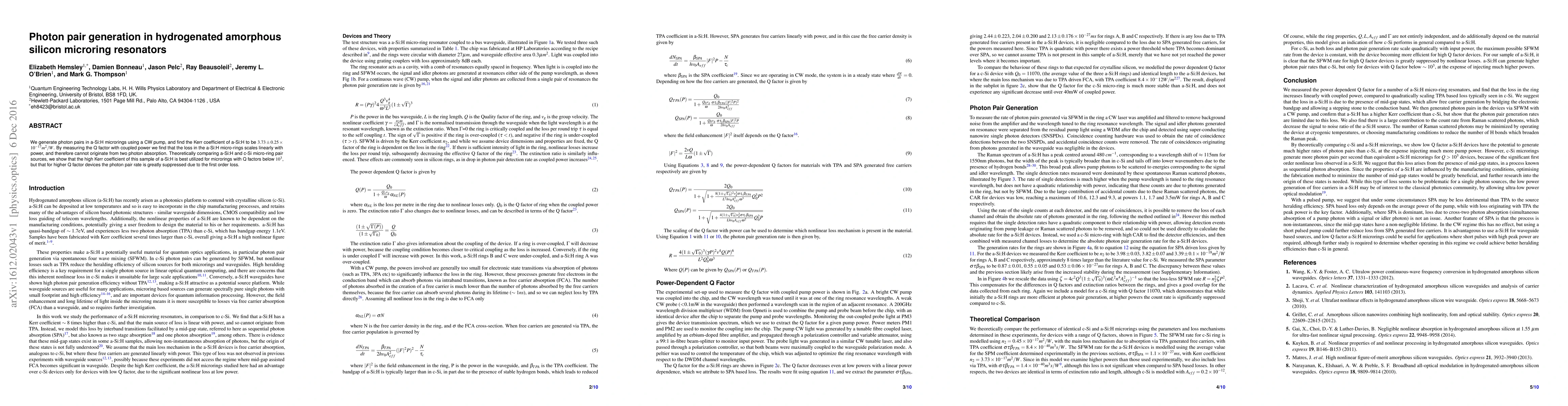 Researchers created photon pairs in hydrogenated amorphous silicon microrings using a CW pump, finding a high Kerr coefficient that is best utilized for low-Q factor devices.