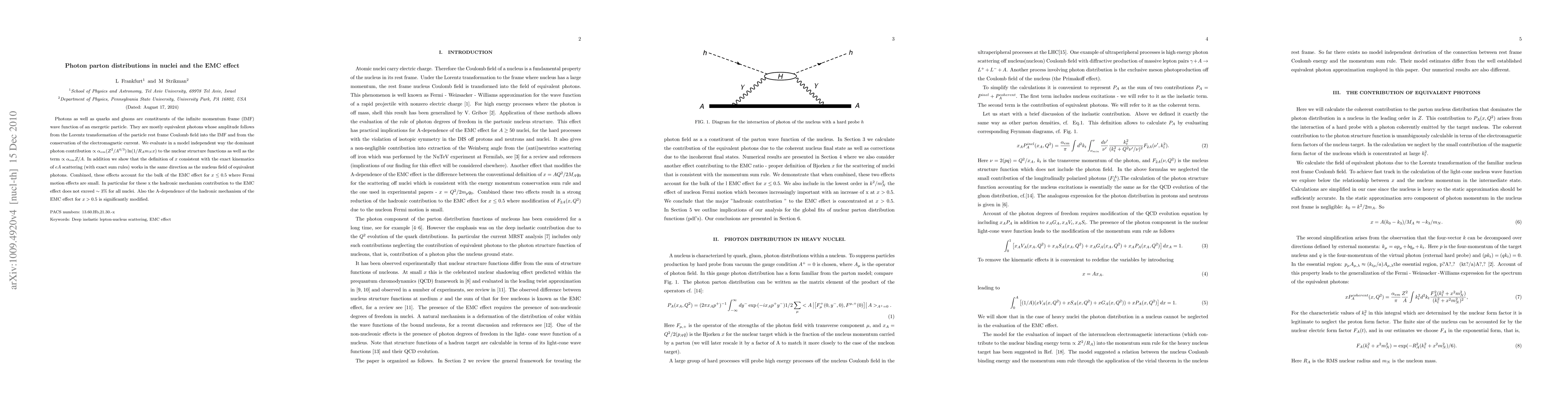 Photons as well as quarks and gluons are constituents of the infinite momentum frame (IMF) wave function of an energetic particle. They are mostly equivalent photons whose amplitude follows from the Lorentz transformation of the particle rest frame Coulomb field into the IMF and from the conservation of the electromagnetic current. We evaluate in a model independent way the dominant photon contribution \propto \alpha_{em}(Z^2/A^{4/3})\ln(1/R_{A}m_{N}x) to the nuclear structure functions as well as the term \propto \alpha_{em}Z/A. In addition we show that the definition of x consistent with the exact kinematics of eA scattering (with exact sum rules) works in the same direction as the nucleus field of equivalent photons. Combined, these effects account for the bulk of the EMC effect for x\le 0.5 where Fermi motion effects are small. In particular for these x the hadronic mechanism contribution to the EMC effect does not exceed \sim 3% for all nuclei. Also the A-dependence of the hadronic mechanism of the EMC effect for x > 0.5 is significantly modified.