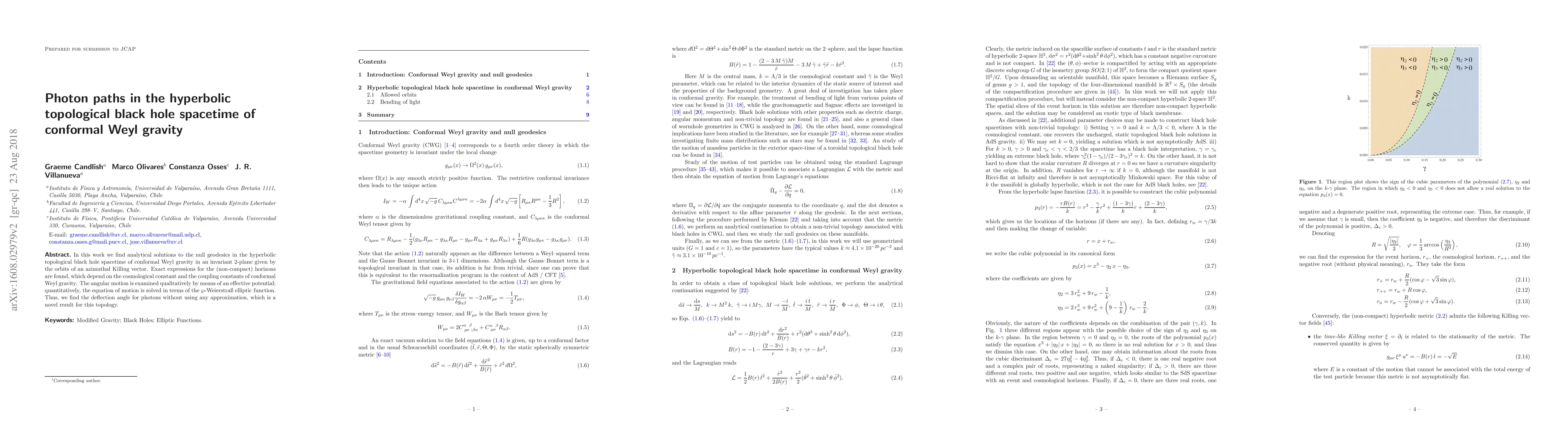 This paper presents analytical solutions for null geodesics in a hyperbolic topological black hole spacetime governed by conformal Weyl gravity, deriving exact expressions for non-compact horizons and solving the equation of motion using the $\wp$-Weierstra{\ss} elliptic function to determine the deflection angle for photons without approximations.