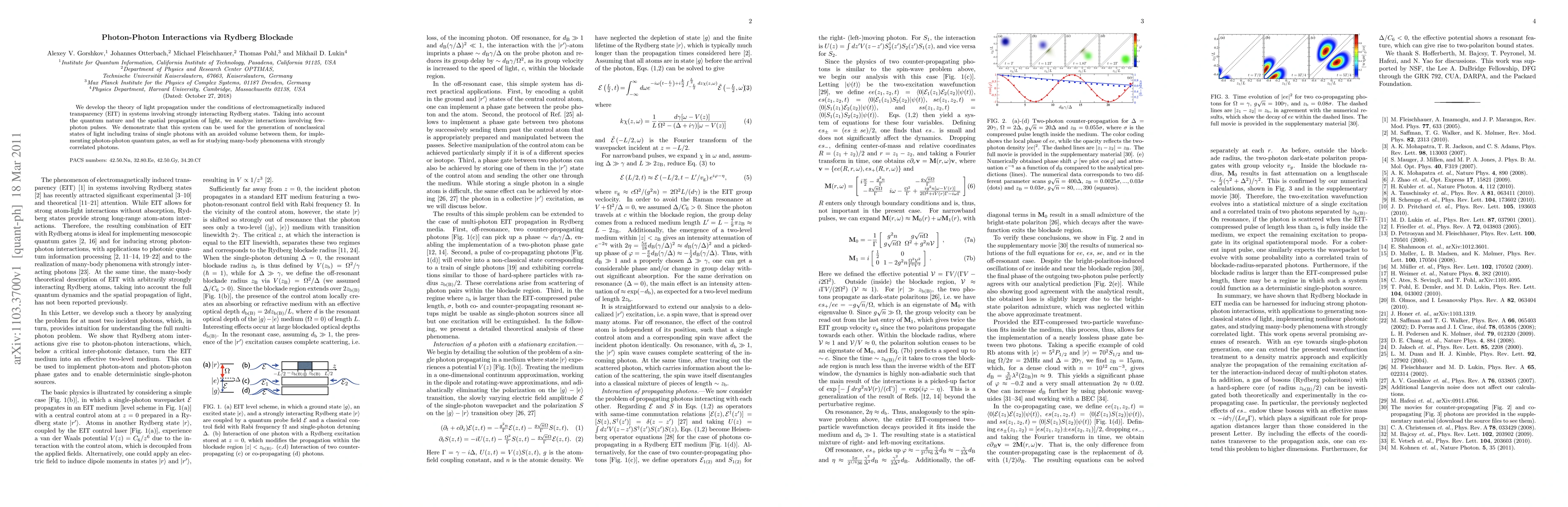 This paper develops a theoretical framework for photon-photon interactions in Rydberg blockade systems under electromagnetically induced transparency, showing potential for generating nonclassical light states and implementing quantum gates. The study also explores the implications for many-body phenomena involving strongly correlated photons.