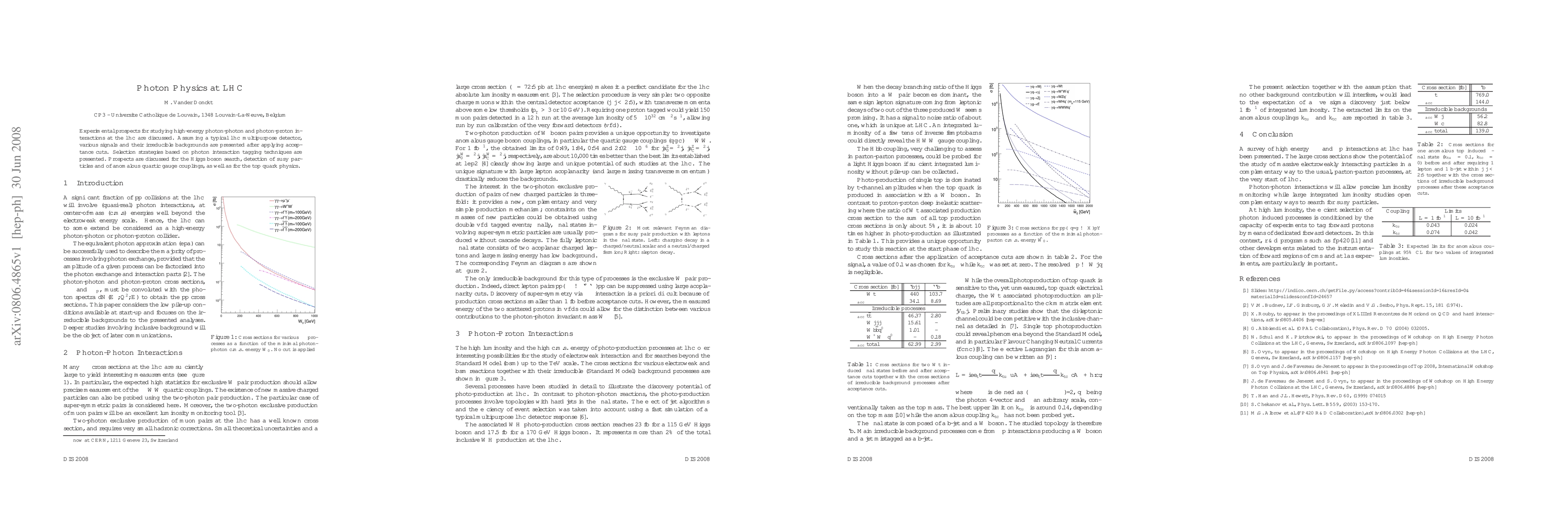 This paper explores experimental opportunities for investigating high-energy photon-photon and photon-proton interactions at the LHC, detailing various signals and background reductions through acceptance cuts. The study also outlines selection strategies for detecting Higgs bosons, supersymmetric particles, anomalous quartic gauge couplings, and top quark physics.