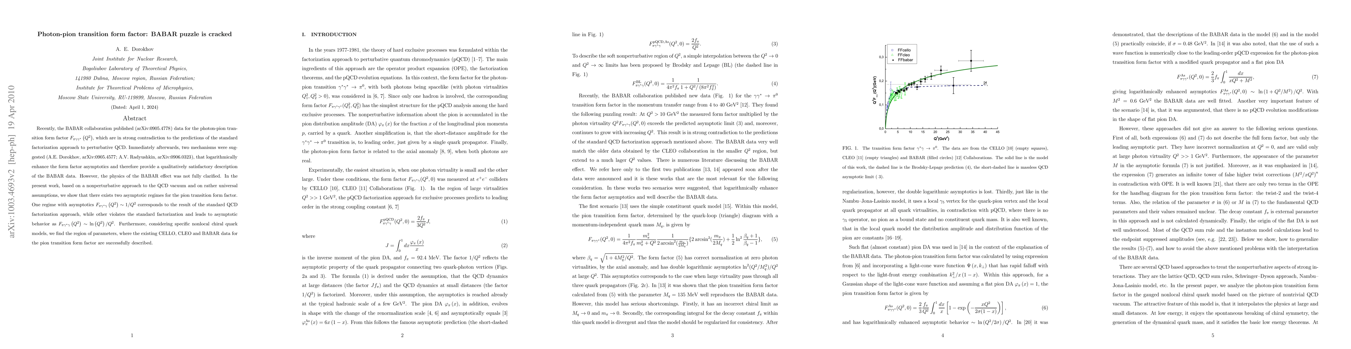 The BABAR collaboration's data on the photon-pion transition form factor contradicts standard QCD predictions. This paper proposes two distinct asymptotic regimes for the form factor, one consistent with standard QCD and another that explains the BABAR data through enhanced logarithmic behavior, providing a satisfactory description of the observed data.