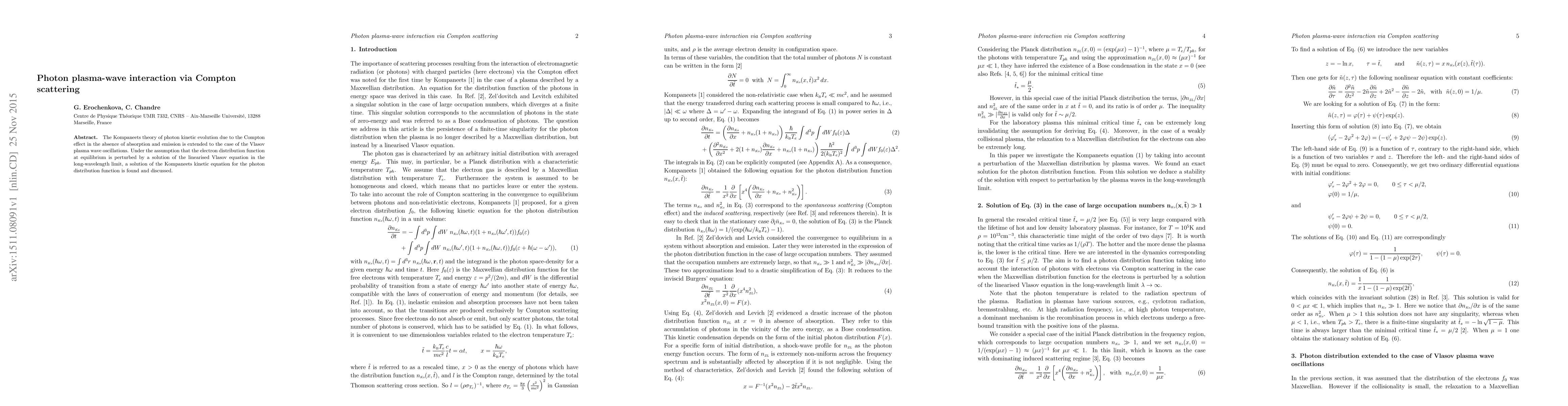 The Kompaneets theory of photon kinetic evolution due to the Compton effect in the absence of absorption and emission is extended to the case of the Vlasov plasma wave oscillations. Under the assumption that the electron distribution function at equilibrium is perturbed by a solution of the linearised Vlasov equation in the long-wavelength limit, a solution of the Kompaneets kinetic equation for the photon distribution function is found and discussed.