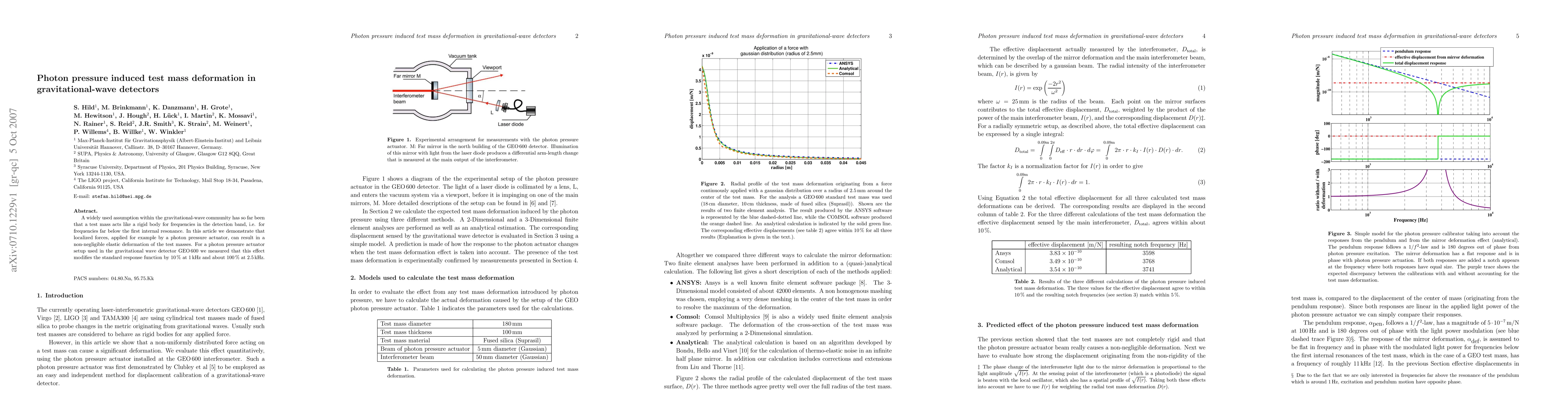 Researchers found that photon pressure can cause significant deformation in test masses used in gravitational-wave detectors, affecting their response function at specific frequencies.