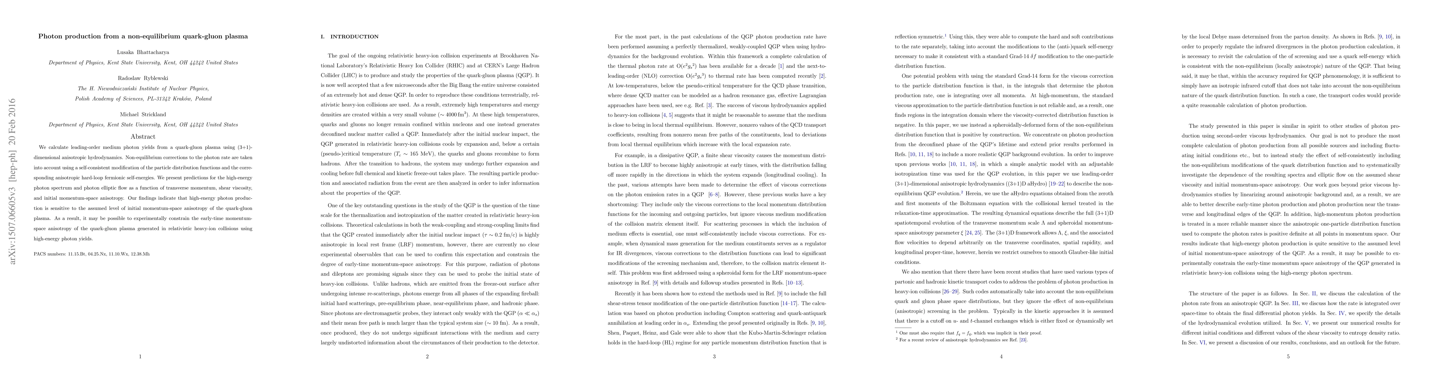 This work distinguishes itself by explicitly considering non-equilibrium effects on photon production and elliptic flow, providing a more realistic framework for understanding photon emissions from the quark-gluon plasma in heavy-ion collisions.