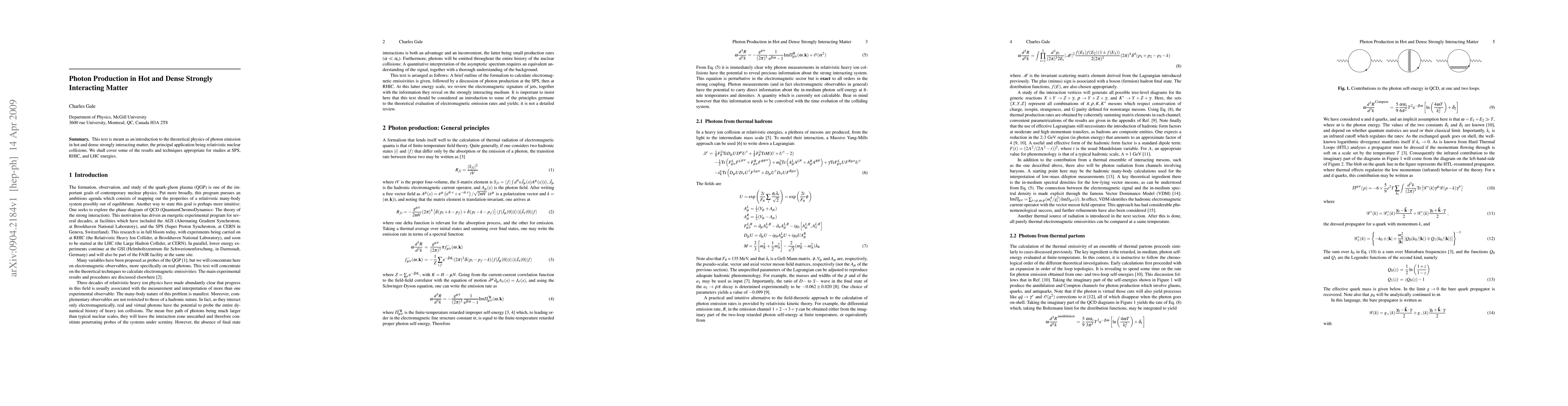 Summary: This paper introduces theoretical frameworks for photon emission in hot, dense, strongly interacting matter, focusing on applications in relativistic nuclear collisions at SPS, RHIC, and LHC energies, and discusses relevant results and techniques.