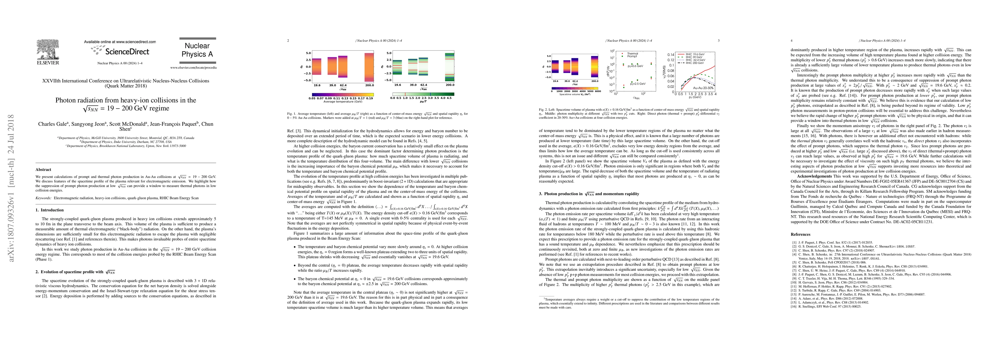 We present calculations of prompt and thermal photon production in Au-Au collisions at $\sqrt{s_{NN}}=19-200$~GeV. We discuss features of the spacetime profile of the plasma relevant for electromagnetic emission. We highlight how the suppression of prompt photon production at low $\sqrt{s_{NN}}$ can provide a window to measure thermal photons in low collision energies.