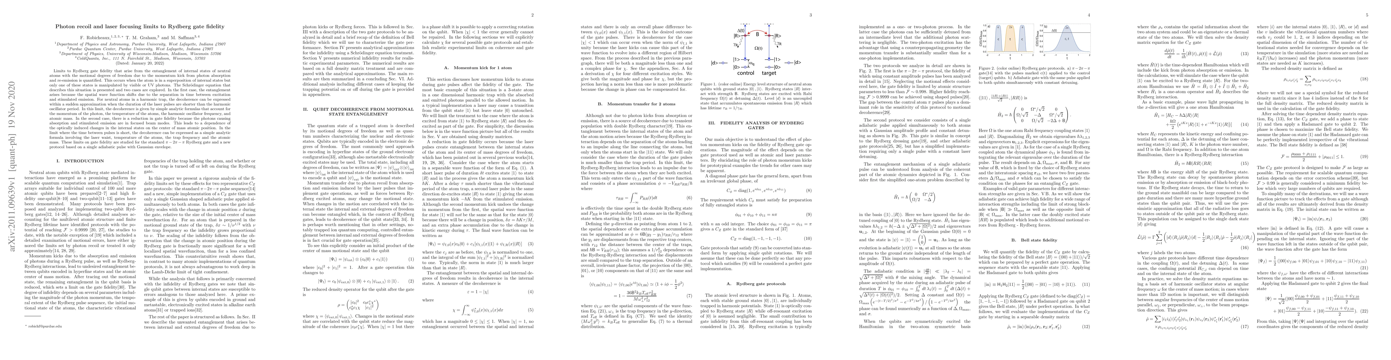 This paper quantifies fidelity limits in Rydberg gates due to photon recoil and laser focusing, showing how internal state entanglement with motional degrees of freedom affects gate performance. It presents analytic formulas for decoherence in both temporal and spatial separation scenarios, considering neutral atoms in harmonic traps and focused laser beams.
