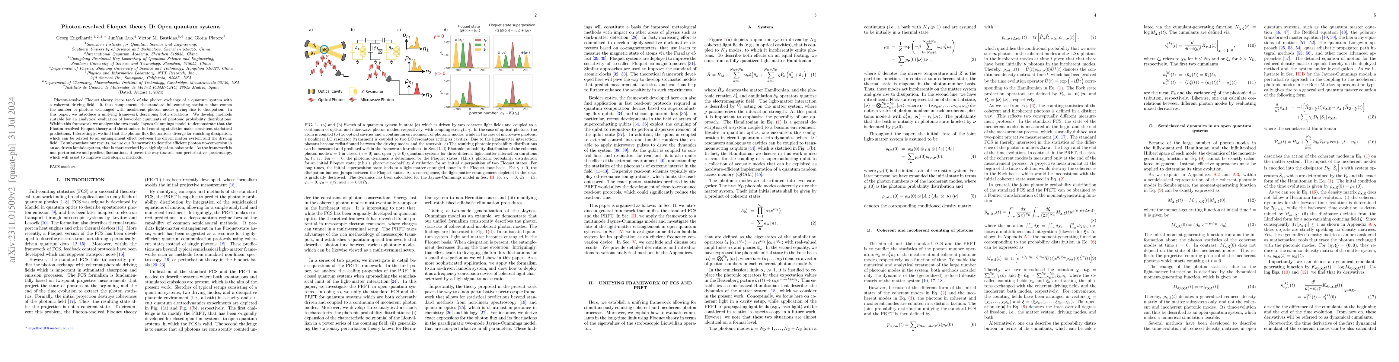 This paper introduces a photon-resolved Floquet theory framework for open quantum systems, providing a method for analyzing photon exchange with coherent driving fields. It demonstrates consistency with standard full-counting statistics and shows that photon-flux fluctuations diverge in the absence of dissipation, indicating entanglement effects.