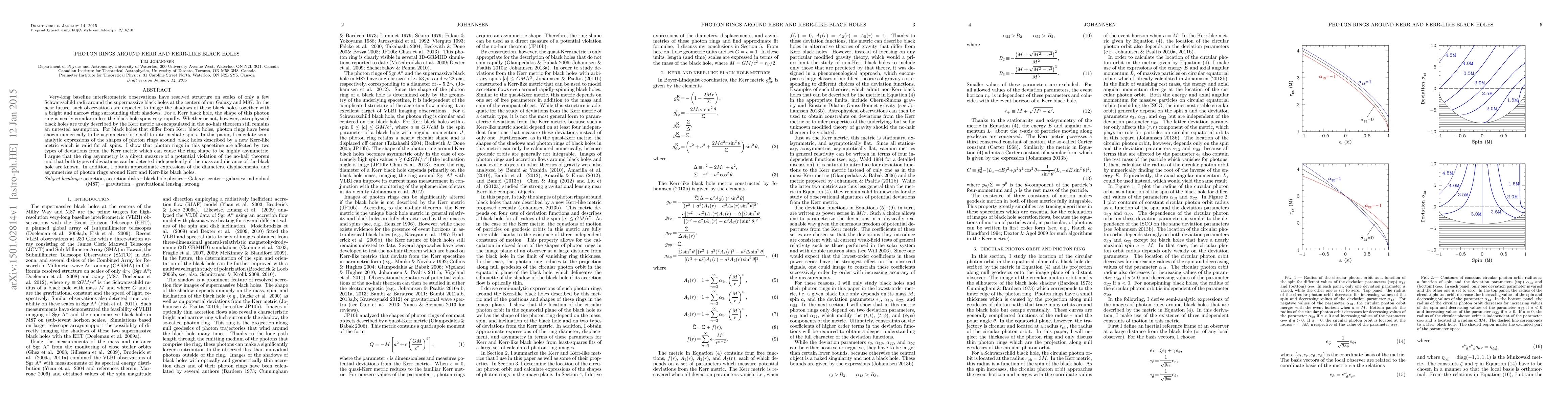This paper calculates semi-analytic expressions for photon ring shapes around Kerr and Kerr-like black holes, demonstrating that deviations from the Kerr metric can cause asymmetry in the ring, potentially indicating a violation of the no-hair theorem. The study suggests that these deviations can be detected independently with knowledge of the black hole's mass and distance.