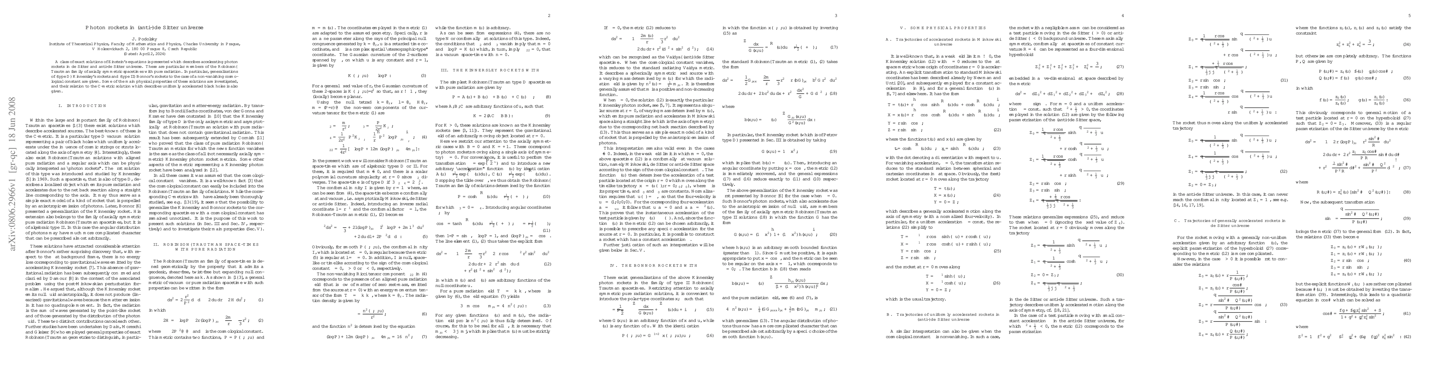 The research presents exact solutions of Einstein's equations for accelerating photon rockets in de Sitter and anti-de Sitter universes, generalizing previous work on Kinnersley's and Bonnor's rockets to include a non-vanishing cosmological constant.