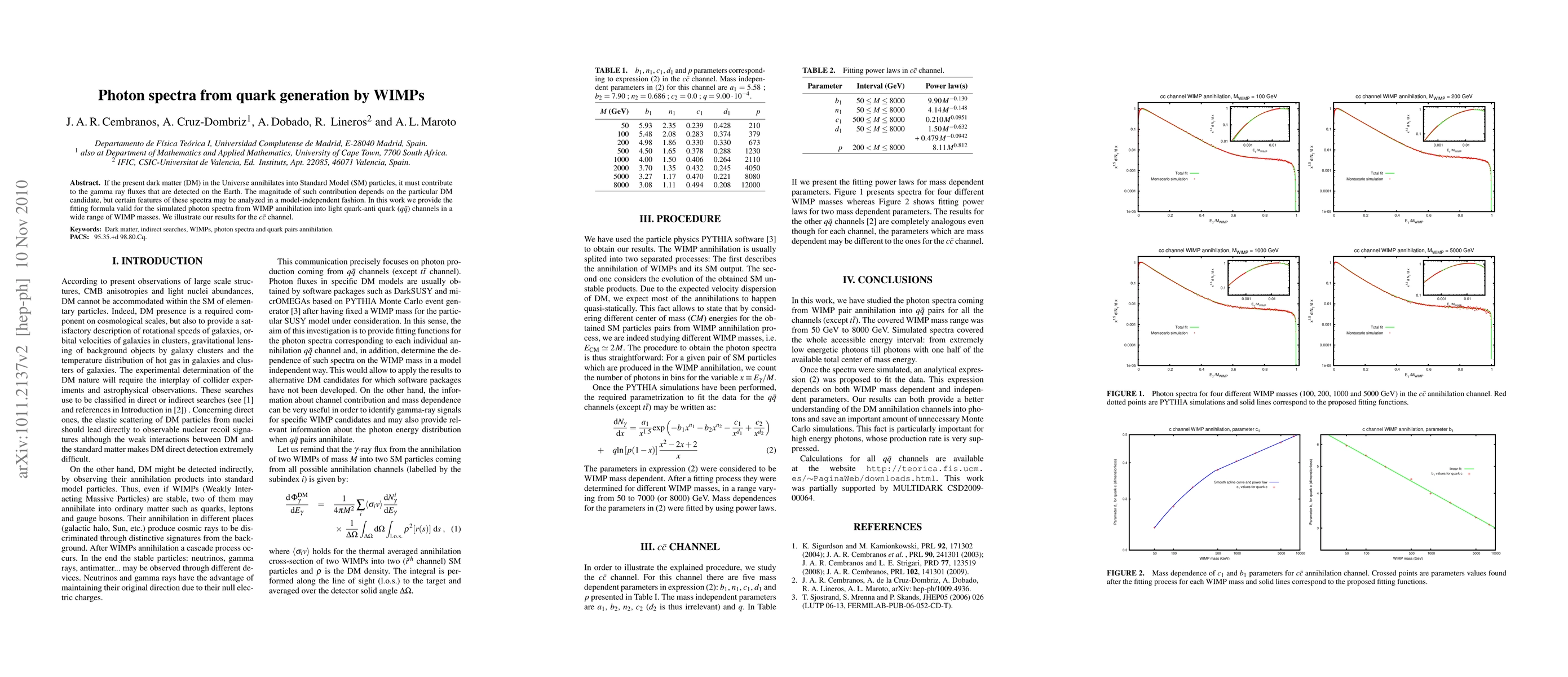 In this work we provide the fitting formula valid for the simulated photon spectra from WIMP annihilation into light quark-anti quark (qq-) channels in a wide range of WIMP masses. We illustrate our results for the cc- channel.