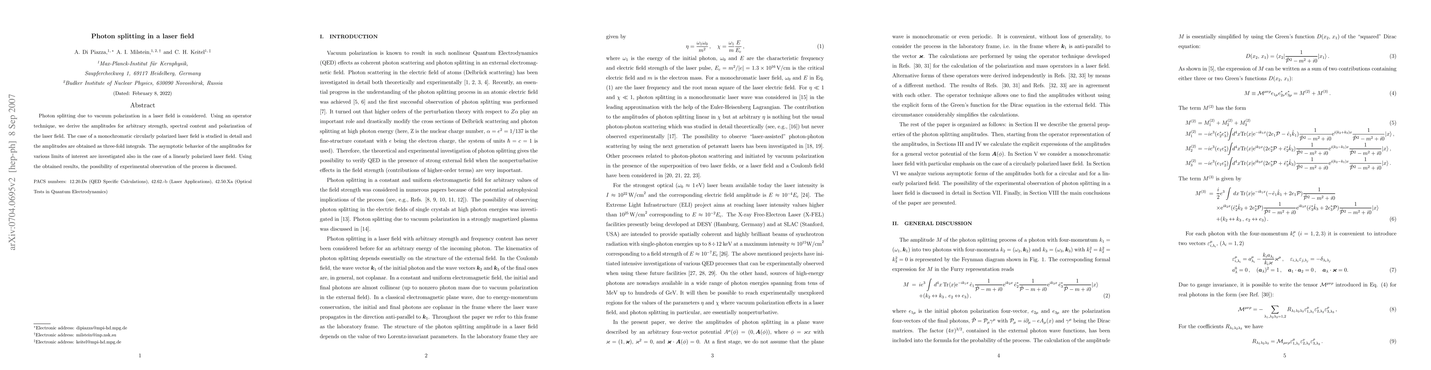 Researchers derived new equations for photon splitting in a laser field due to vacuum polarization, which could potentially be observed experimentally.