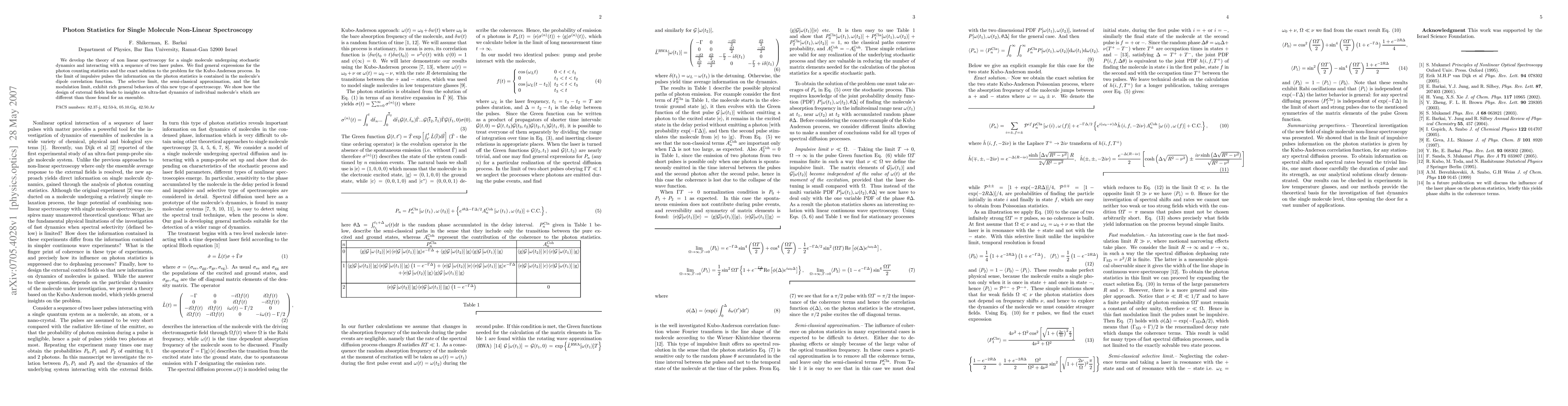 This paper develops a theoretical framework for non-linear spectroscopy of single molecules, deriving general expressions for photon counting statistics and finding an exact solution for the Kubo-Anderson process. It highlights the unique dynamics of individual molecules revealed by the external field design compared to ensemble measurements.