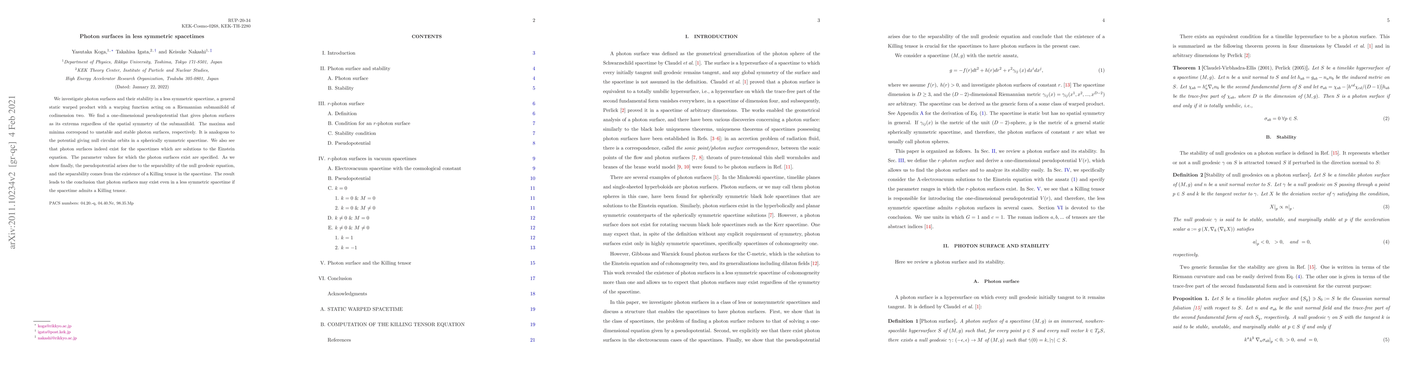This paper explores photon surfaces in less symmetric spacetimes, specifically in static warped products, and identifies a one-dimensional pseudopotential that determines their stability. It concludes that photon surfaces can exist in such spacetimes if they possess a Killing tensor, analogous to null circular orbits in symmetric spacetimes.