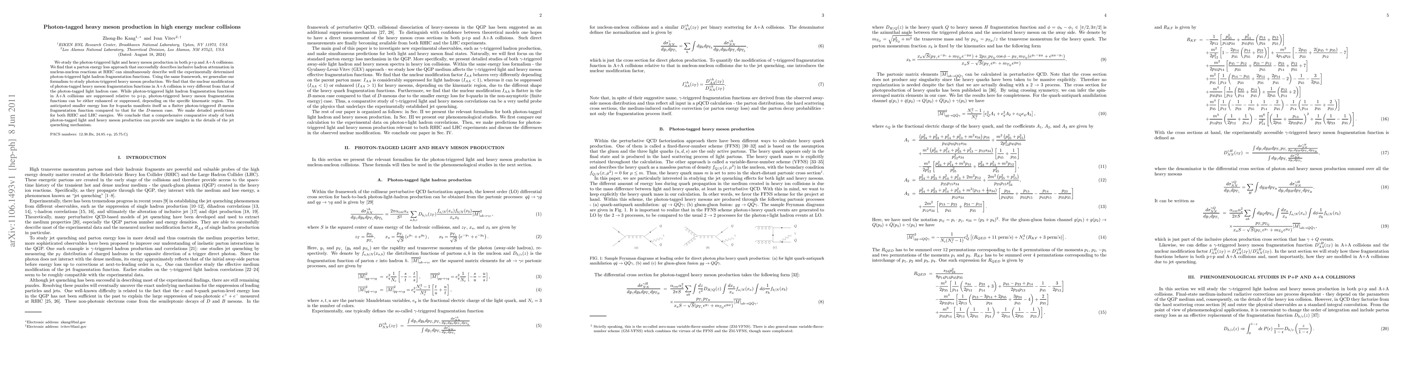 This paper investigates photon-triggered light and heavy meson production in high-energy nuclear collisions, finding that while light hadrons show suppression, heavy mesons exhibit varied behavior, suggesting different energy loss mechanisms for quarks. Predictions are made for both RHIC and LHC energies, highlighting the potential for new insights into jet quenching.