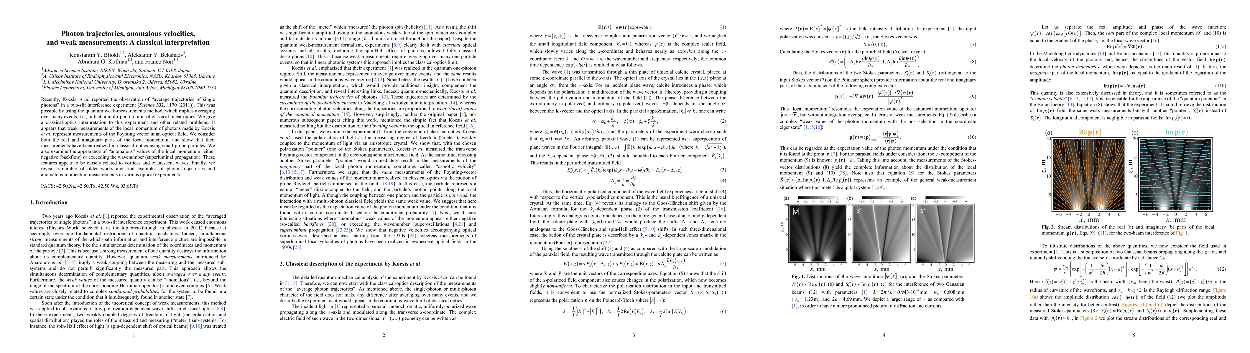 This paper reinterprets the quantum weak-measurement results of Kocsis et al. on single-photon trajectories using classical optics, showing that the observed phenomena, including anomalous velocities and backflow, can be explained through classical concepts like the Poynting vector, vortices, and evanescent waves. It also highlights historical precedents for similar optical observations.