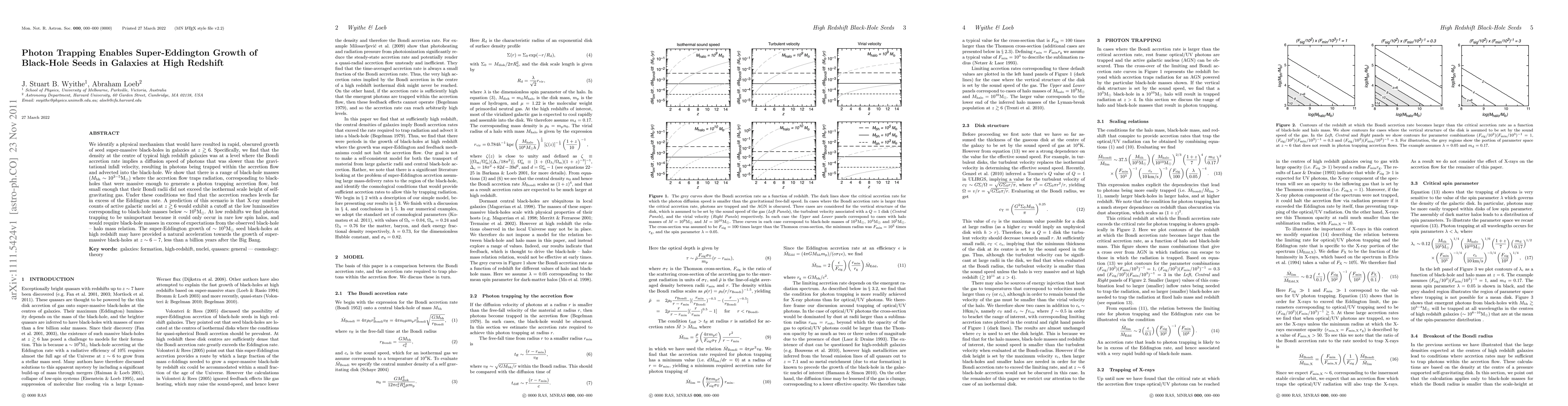 This paper explores a mechanism for rapid black-hole growth at high redshifts (z>6) where photon trapping within accretion flows enables super-Eddington growth, leading to seed black-holes reaching masses of ~10^5 solar masses. The study predicts a cutoff in X-ray counts for low-luminosity active galactic nuclei at these redshifts.