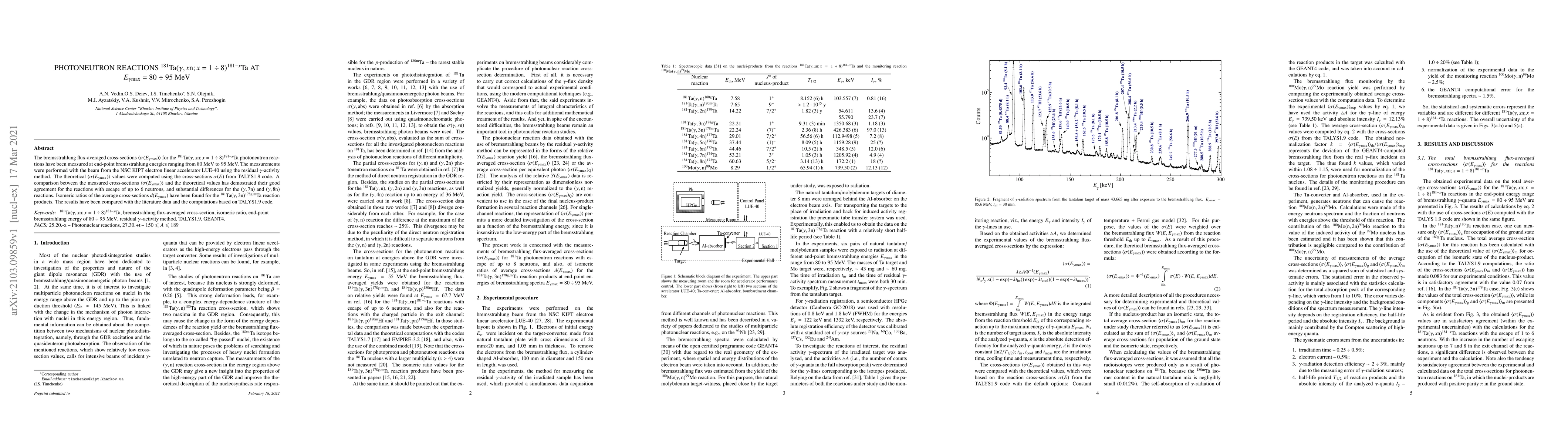 This paper measures the bremsstrahlung flux-averaged cross-sections for photoneutron reactions in tantalum-181 at gamma energies from 80 to 95 MeV, showing good agreement between measured and theoretical results for reactions up to 6 neutron emissions, with notable discrepancies for the $(\gamma,7n)$ and $(\gamma,8n)$ reactions. Isomeric ratios for the $(\gamma,3n)$ reaction products were also determined.