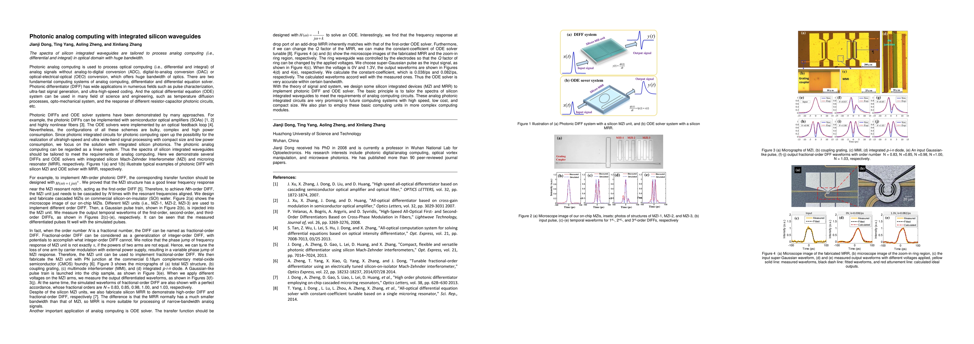 This paper explores the design and implementation of photonic analog computing using integrated silicon waveguides to perform operations like differentiation and solving differential equations in the optical domain, aiming for high-speed, low-cost, and compact future computing systems. These silicon-based photonic circuits are foundational for more complex computing modules.