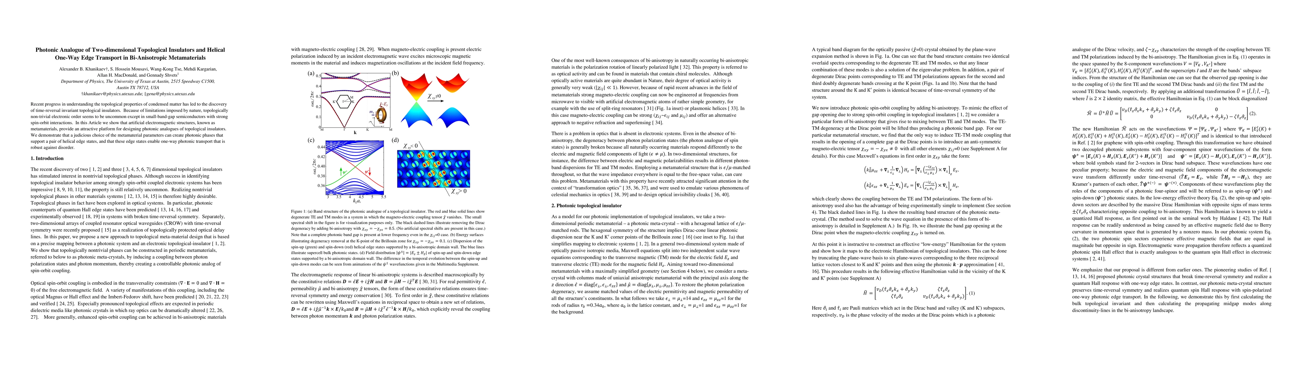 Recent progress in understanding the topological properties of condensed matter has led to the discovery of time-reversal invariant topological insulators. Because of limitations imposed by nature, topologically non-trivial electronic order seems to be uncommon except in small-band-gap semiconductors with strong spin-orbit interactions. In this Article we show that artificial electromagnetic structures, known as metamaterials, provide an attractive platform for designing photonic analogues of topological insulators. We demonstrate that a judicious choice of the metamaterial parameters can create photonic phases that support a pair of helical edge states, and that these edge states enable one-way photonic transport that is robust against disorder.