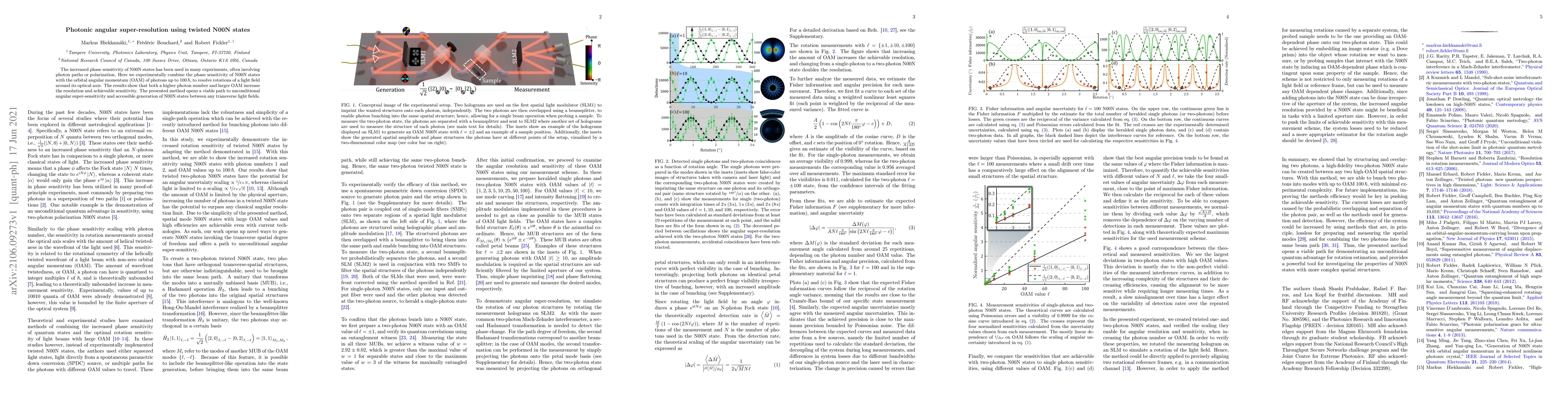 This paper demonstrates a method to achieve photonic angular super-resolution by combining N00N states with high orbital angular momentum photons, showing improved resolution and sensitivity. The technique enables unconditional angular super-sensitivity and facilitates the generation of N00N states between transverse light fields.