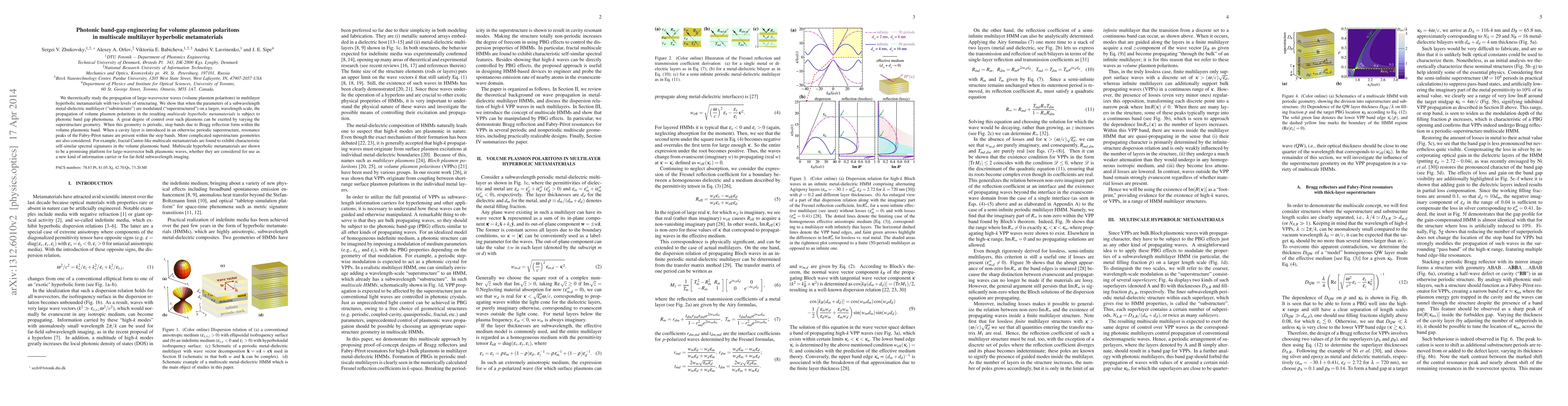 This paper explores the manipulation of volume plasmon polaritons in multiscale multilayer hyperbolic metamaterials through photonic band-gap engineering. By modulating subwavelength metal-dielectric multilayers on a larger scale, the researchers demonstrate control over plasmonic wave propagation, including the formation of stop bands and Fabry-Pérot resonance peaks.