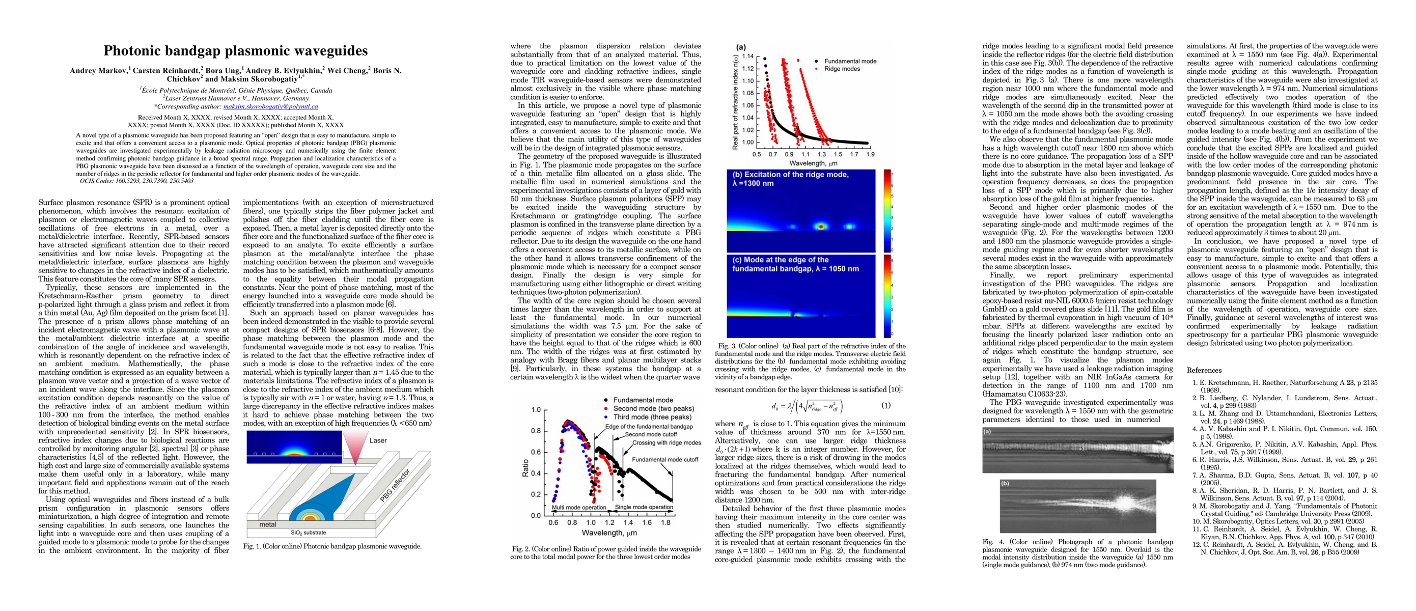 This paper proposes a novel photonic bandgap plasmonic waveguide with an open design for easy manufacturing and excitation, and investigates its optical properties experimentally and numerically. The study discusses the waveguide's propagation and localization characteristics across different wavelengths, core sizes, and ridge configurations.