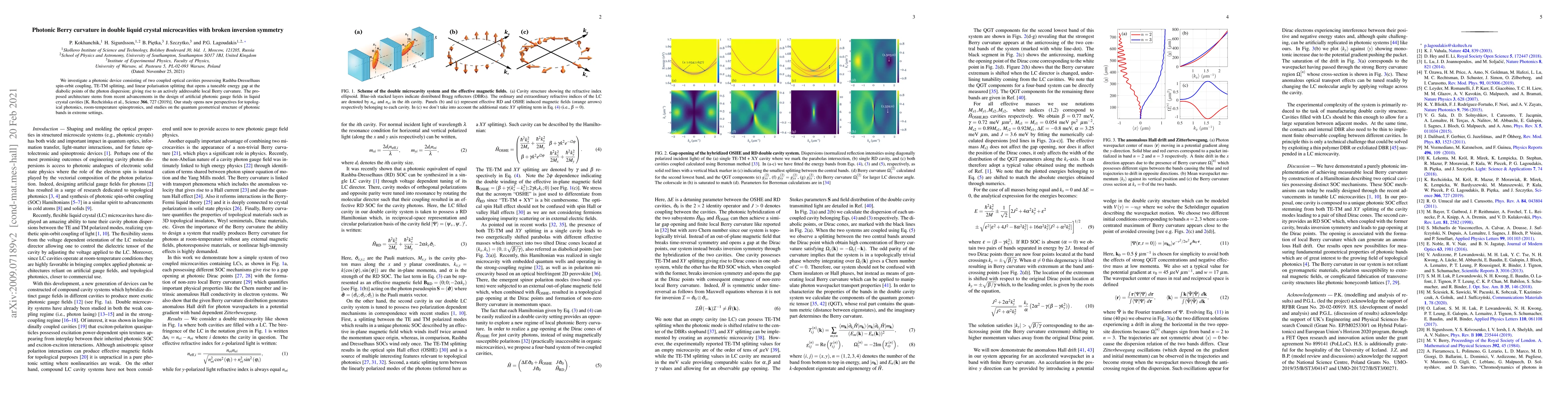 The research explores a photonic device with two coupled cavities in liquid crystals, featuring Rashba-Dresselhaus spin-orbit coupling, TE-TM splitting, and polarization splitting. This setup creates a tuneable energy gap and an actively addressable local Berry curvature, advancing topological photonics, room-temperature spinoptronics, and photonic band structure studies.