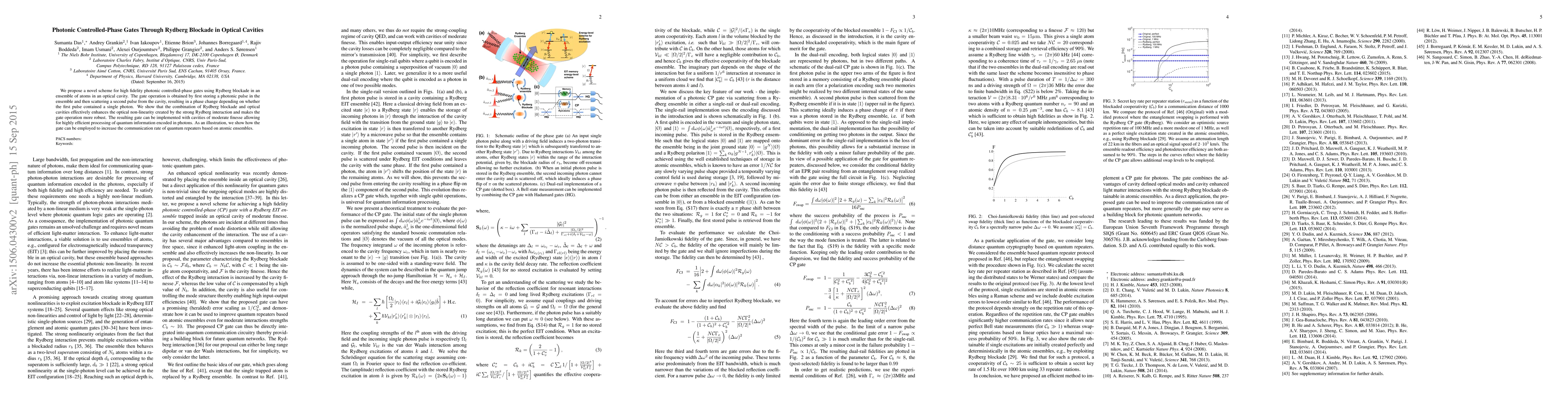 This paper proposes a high fidelity photonic controlled-phase gate using Rydberg blockade in optical cavities, enhancing optical non-linearity and reducing gate requirements. The gate can efficiently process quantum information and improve the communication rate of quantum repeaters.