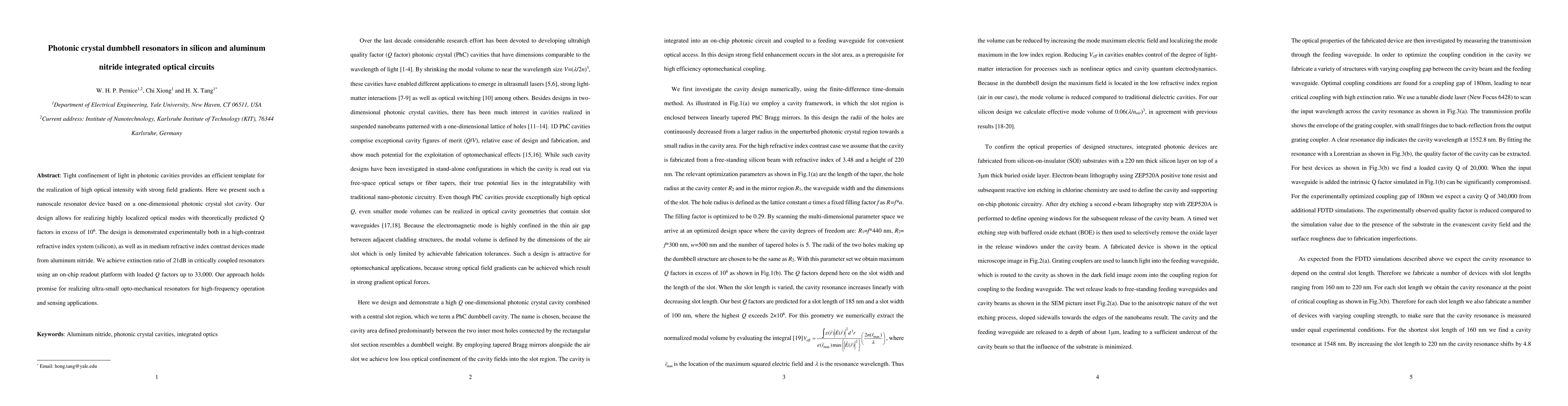 This paper presents a photonic crystal slot cavity design for high optical intensity and strong field gradients, achieving Q factors over 10^6 in silicon and aluminum nitride. Experimental results show a 21dB extinction ratio in critically coupled resonators, promising for ultra-small opto-mechanical resonators in high-frequency sensing.